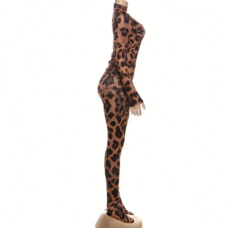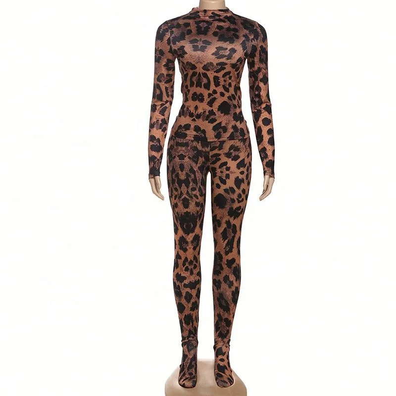 Dropshipping Wholesale Jogging Wear 2026 Two Piece Leopard Print Long Sleeve Women's Pants Set