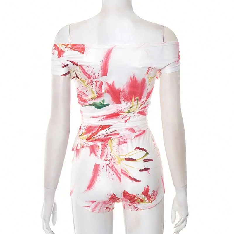 Dropshipping American Clothing Wholesale New Arrivals Two Piece Flower Print 2026 Shorts Set Women