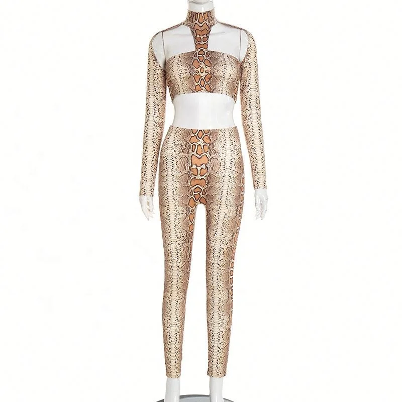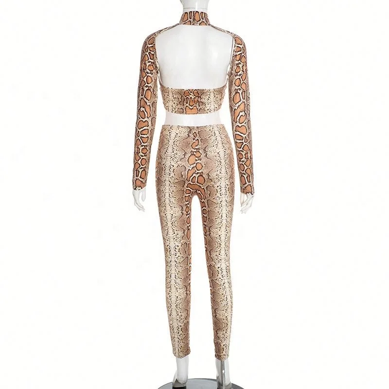 Dropshipping New Arrivals 2026 Women Clothing Snake Print Wholesale Long Sleeve Two Piece Pants Set