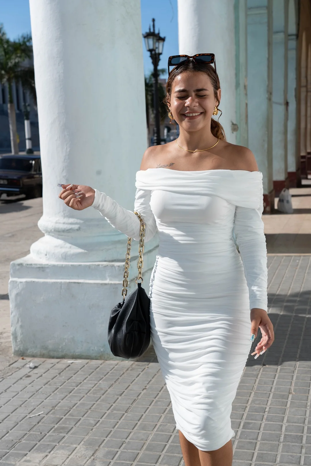 Unique Design off Shoulder Long Sleeve Bodycon Dresses Women Lady Elegant Ruched Formal Evening Dresses
