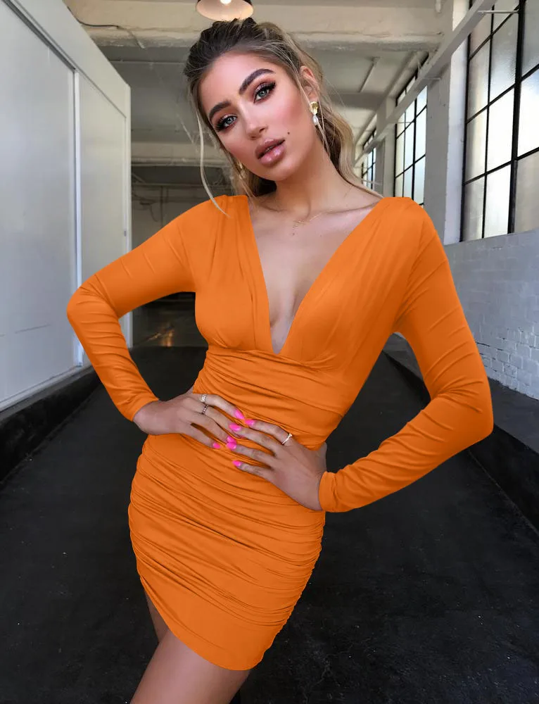 New Fashion Slim Waist Wrap Nightclub Long Sleeve Deep V-Neck Party Club Sexy Party Dresses