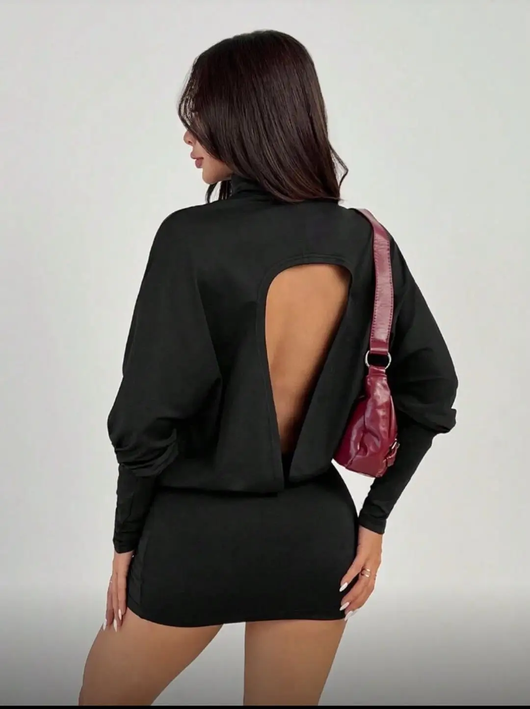 2026 Design Long Sleeve Cut Out open back mini dress V Neckline Personality Tight Smocked Night Club Dress