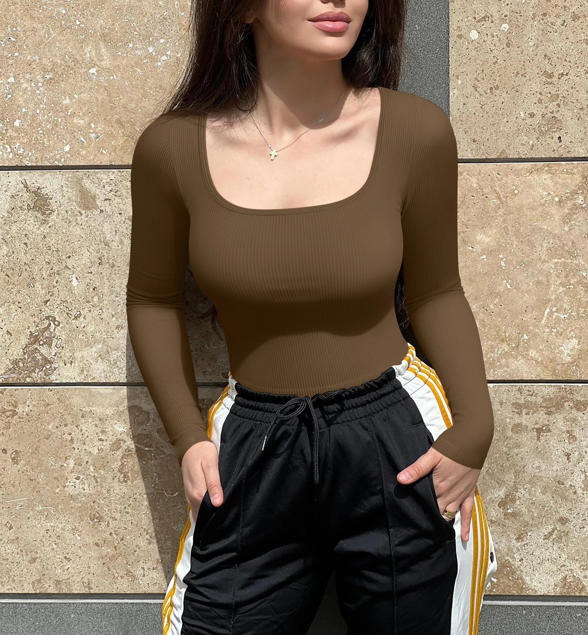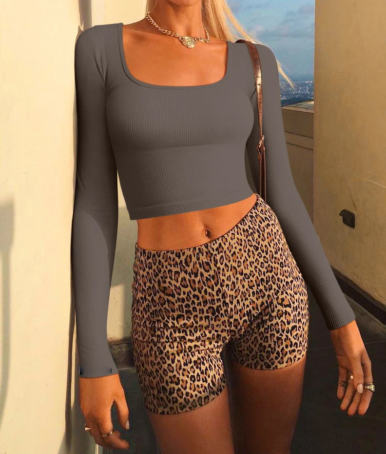 Hot Selling Long Sleeved Square Neckline Exposed Navel Women's Seamless Yoga Top