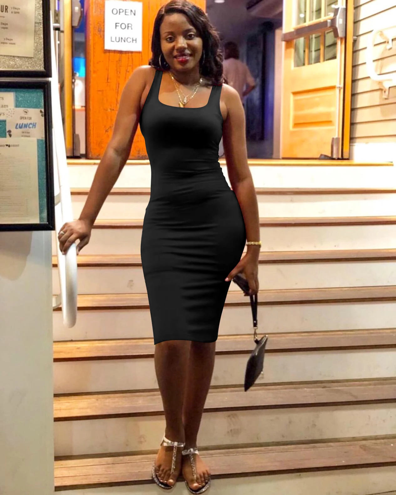 New Arrivals Summer Sleeveless Simple Style Midi Tank Basic Bodycon Dress Sexy Dress