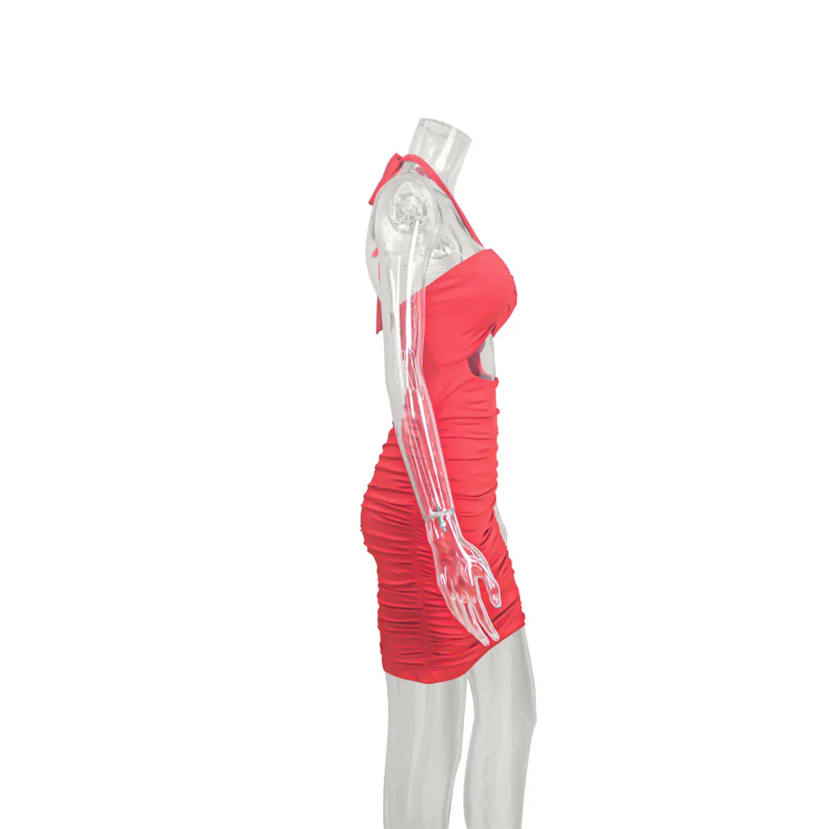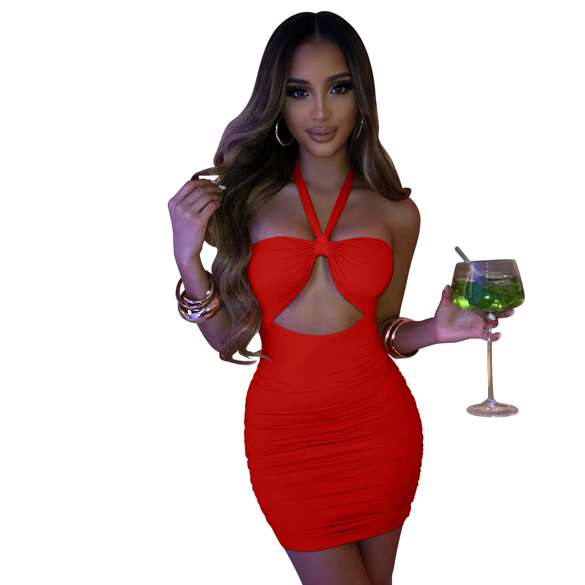 2022 Plus Size Clothing Bandage Halter Hollow Out Backless Ruched Women Party Dress