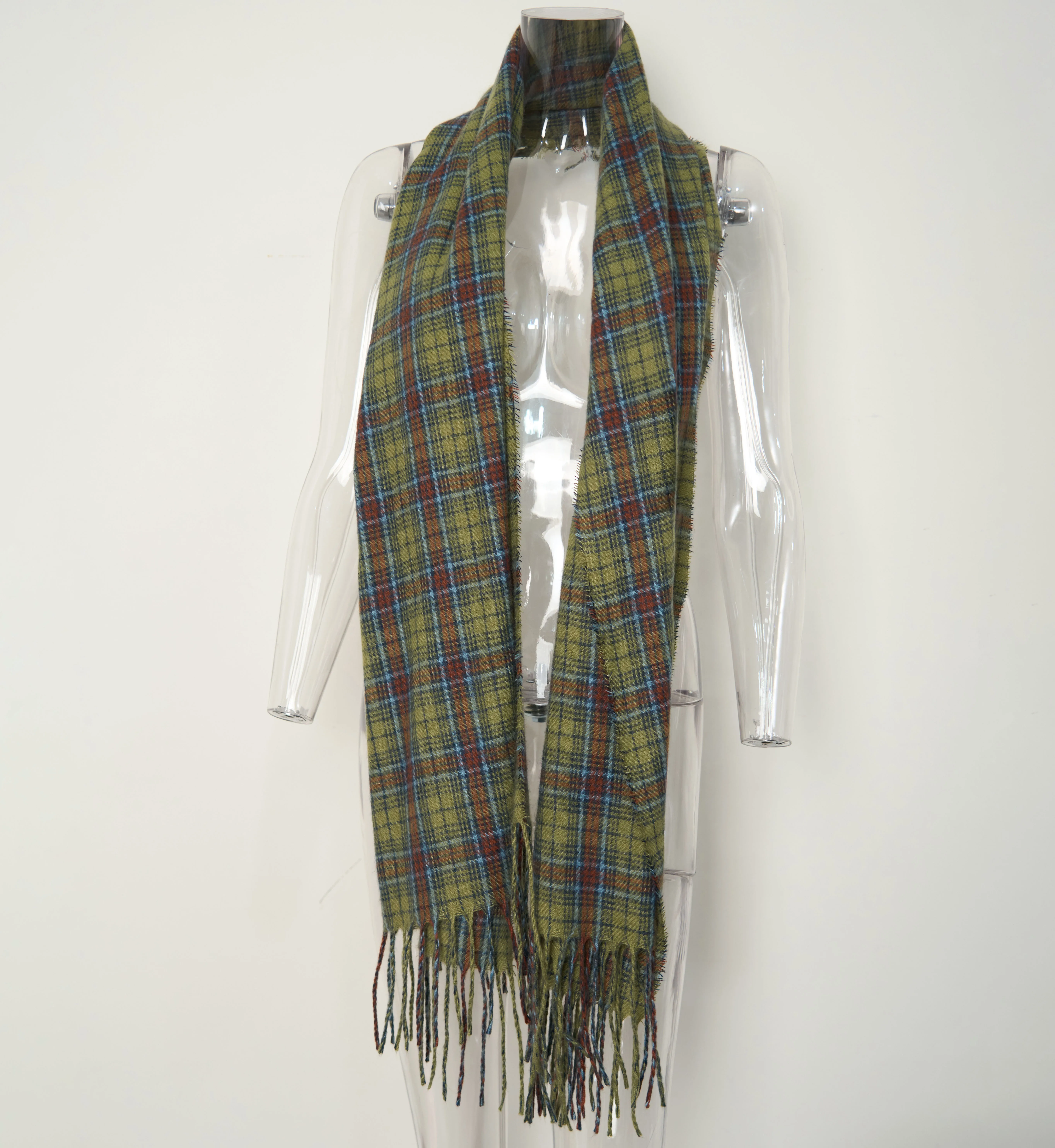 New GGFRIDAY Scarves Vintage Autumn Atmosphere Tassel Plaid Scarf