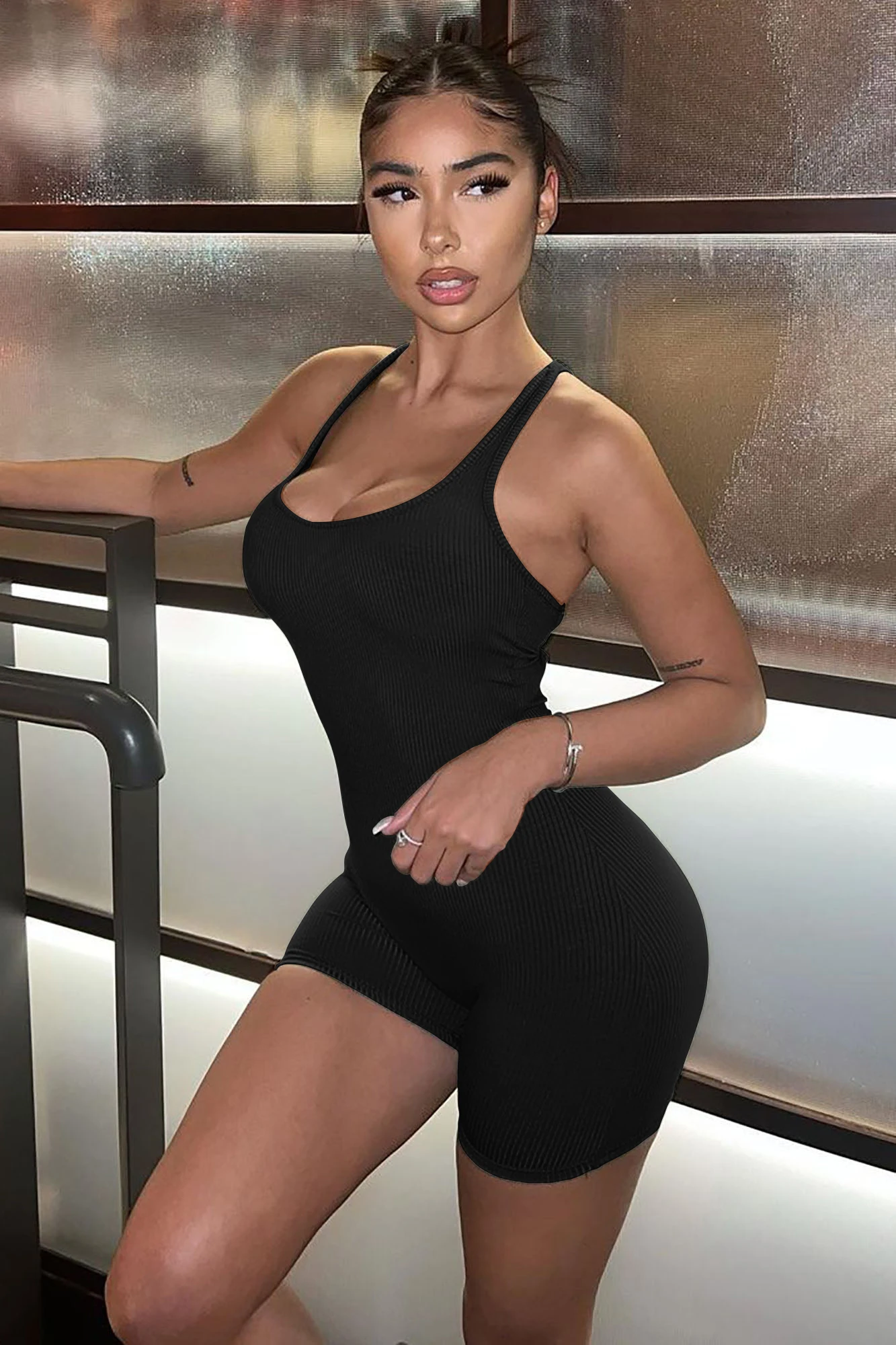 Wholesale v Neck Short Sleeve Bodycon Slim Fit Casual Running Gym Jumpsuit Woman