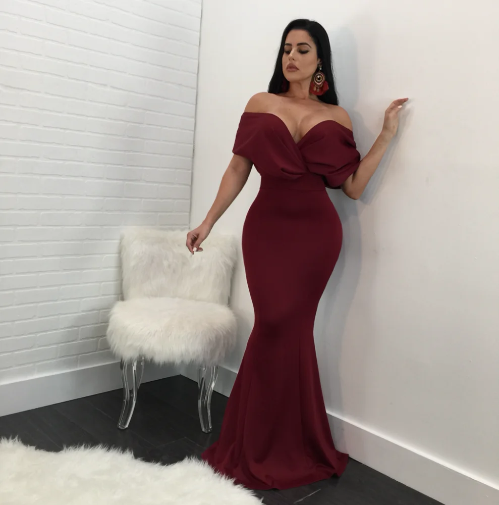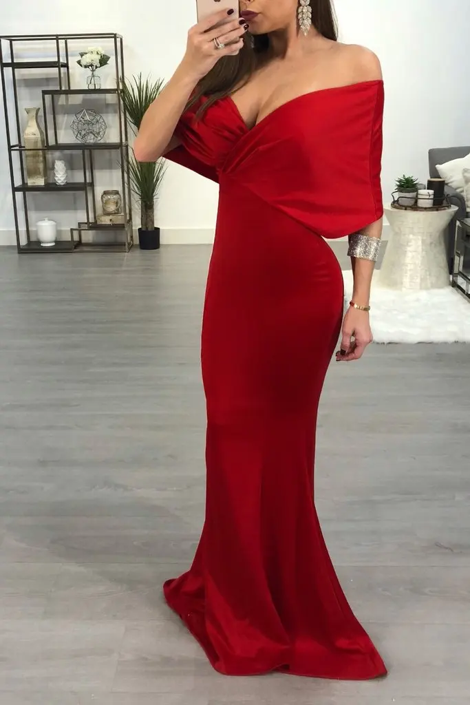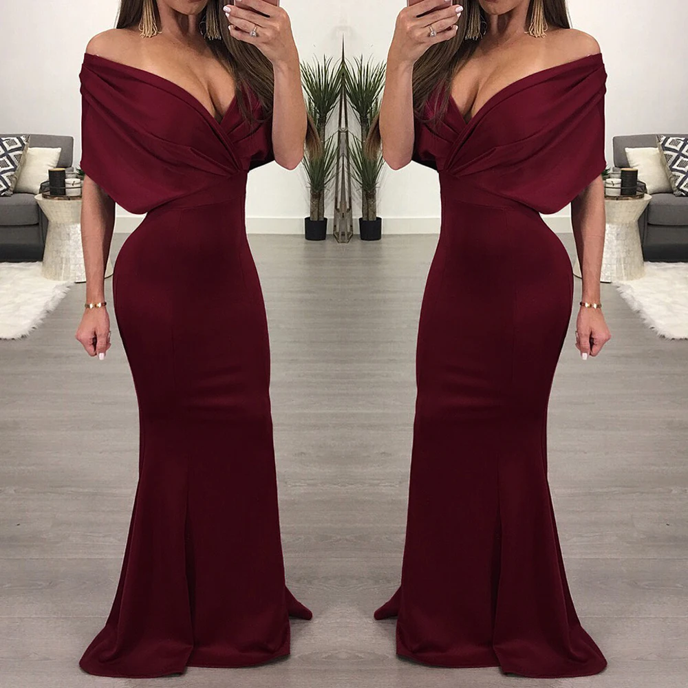 Fashion Custom Woman off the Shoulder Ruched Formal Party Dress Bodycon Mermaid Evening Dress
