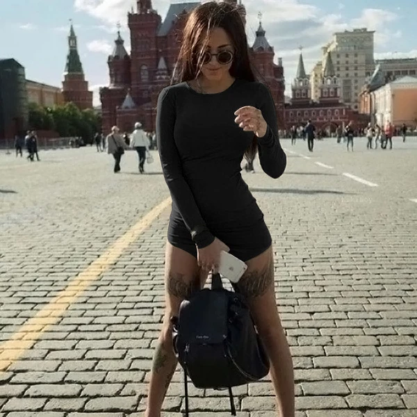 High Quality Dresses for Women Long Sleeve Round Neck Mini Bodycon Casual Dress for Daily Life