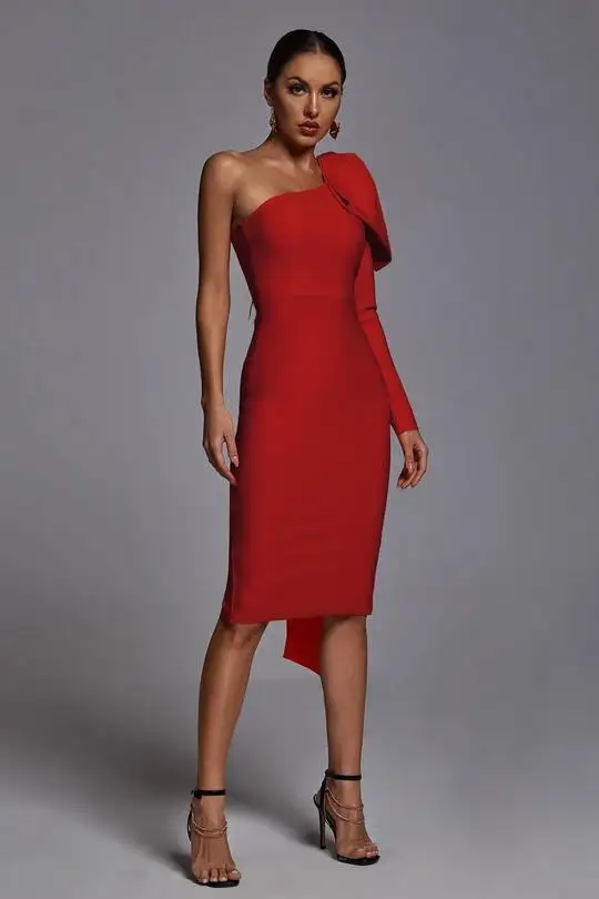 Custom New One Shoulder Long Sleeve Tassel Shoulder Elegant Dresses Women Evening Dress