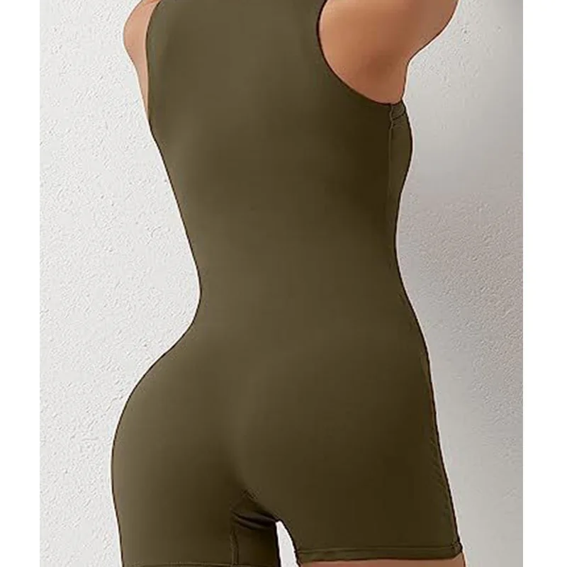 Women's Square Neck Yoga Bodysuit - High Waist Tummy Control Stretch Gym Jumpsuit, Sleeveless Tank Style, Custom Logo Available
