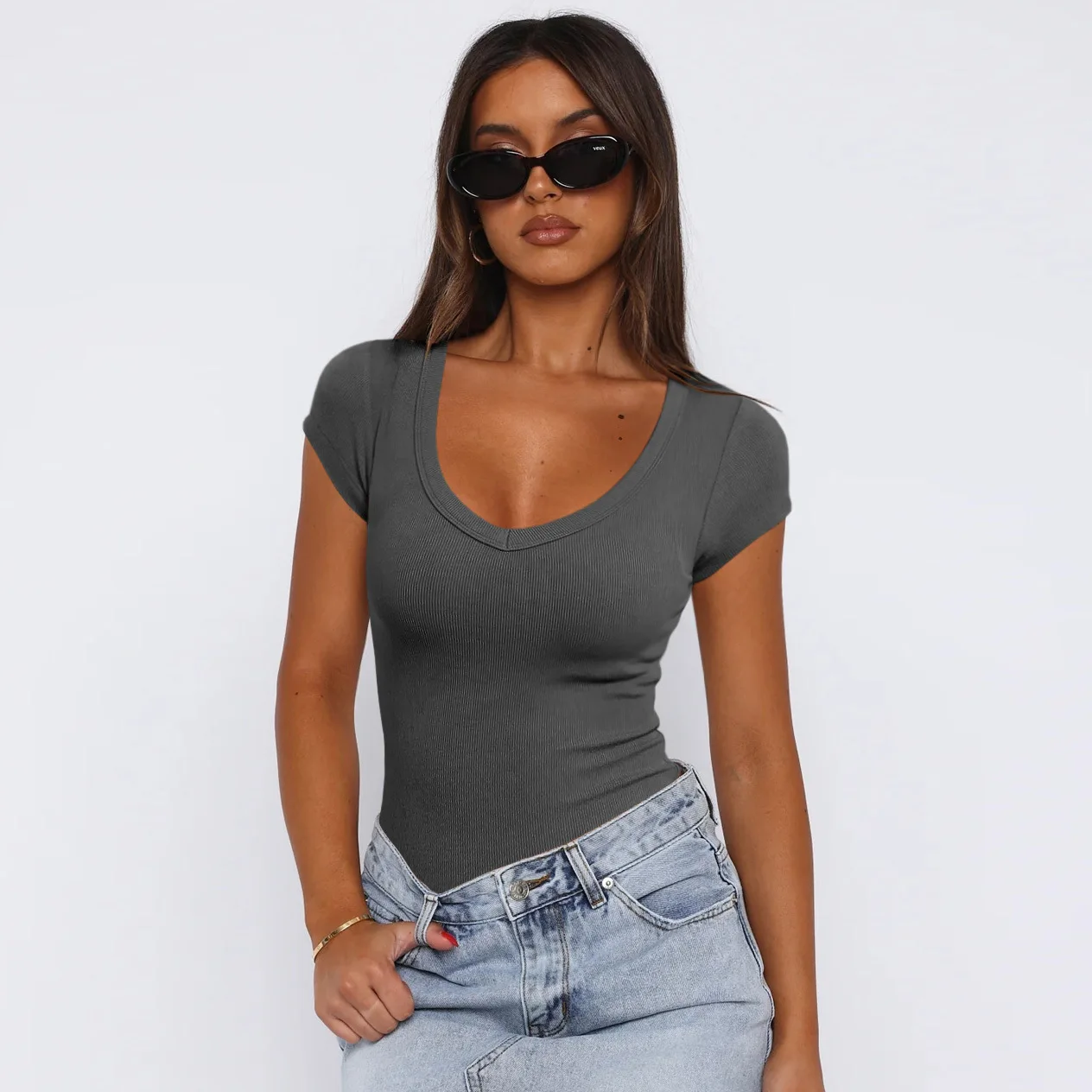 Thread Ribbed T Shirt Y2K Summer Slim Fit Tee Tops Short Sleeved T-shirt Design Sense Shoulder Top for Women