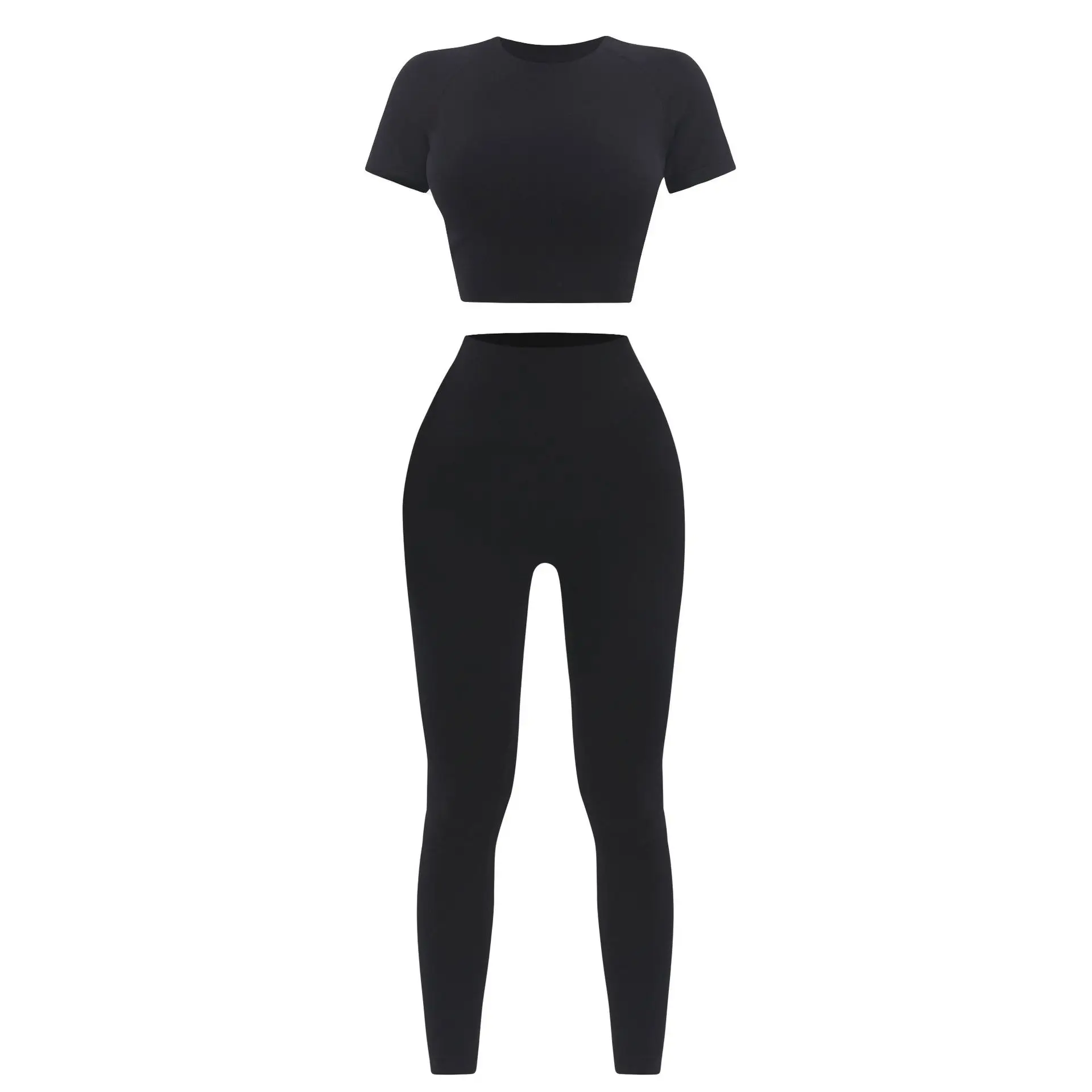 2026 Hot Women's Seamless Yoga Set High Waist Short Sleeve Crop Top Stretchy Gym Activewear with Chest Pad