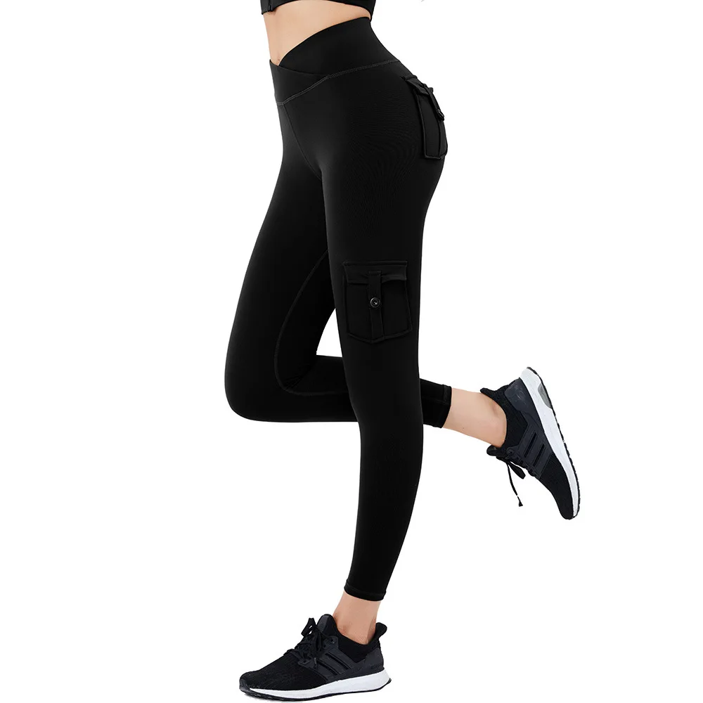High Elasticity Solid Four-Way Stretch Plus Size High Waist Sexy Women Fitness Leggings Workwear Cargo Yoga Pants with Pocket