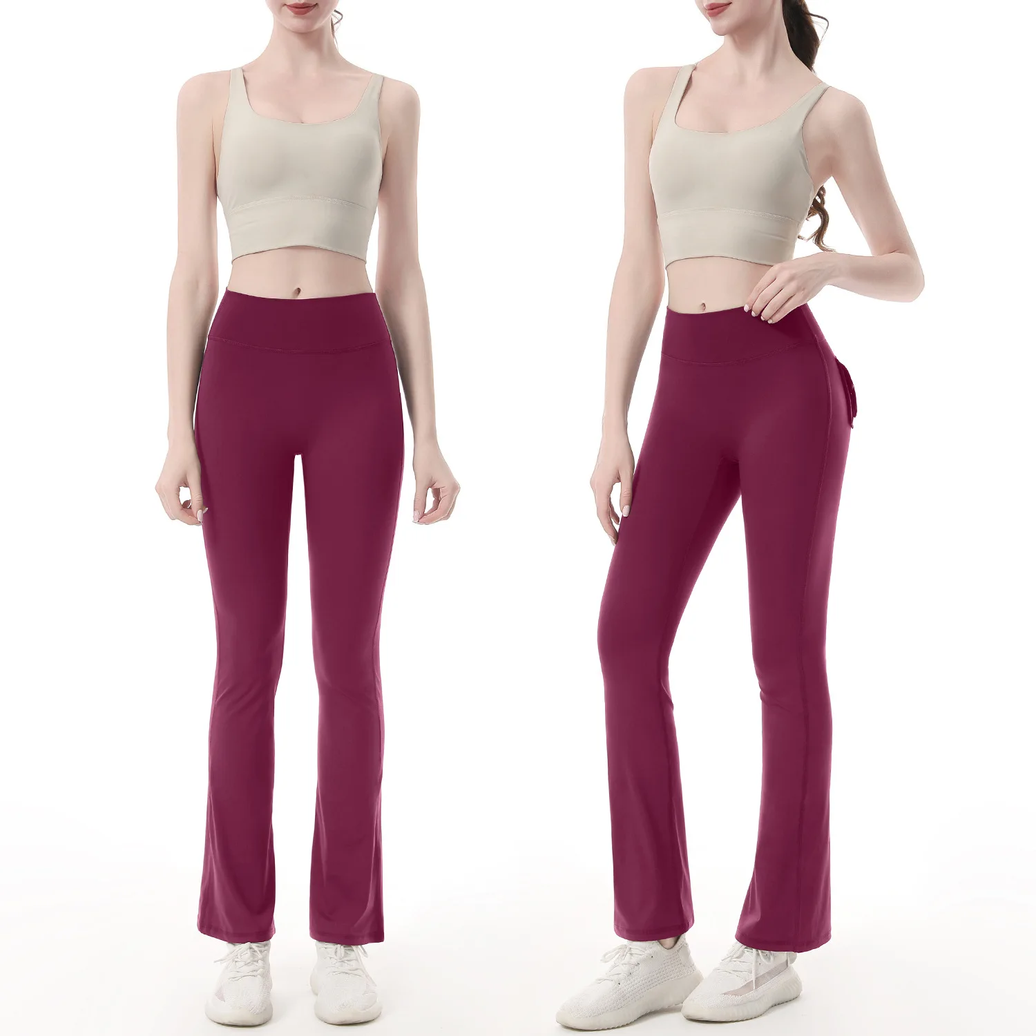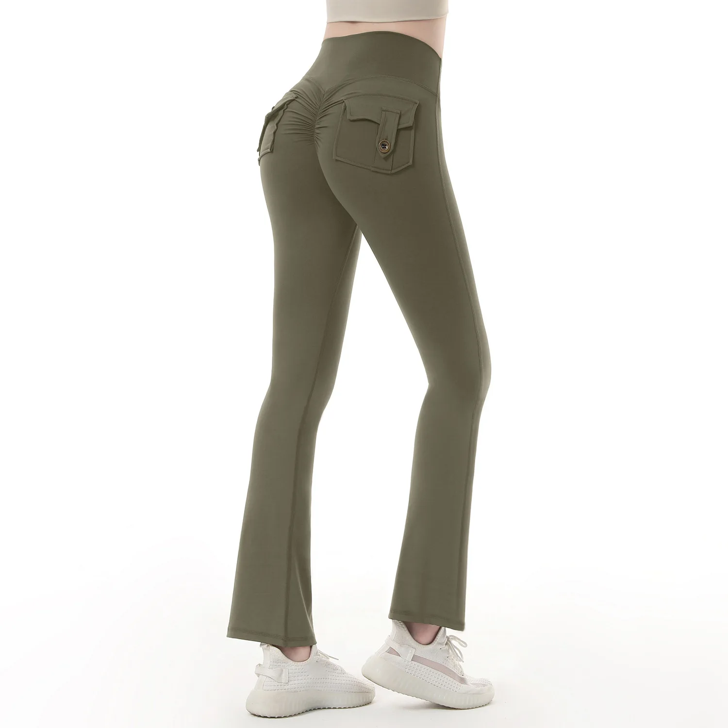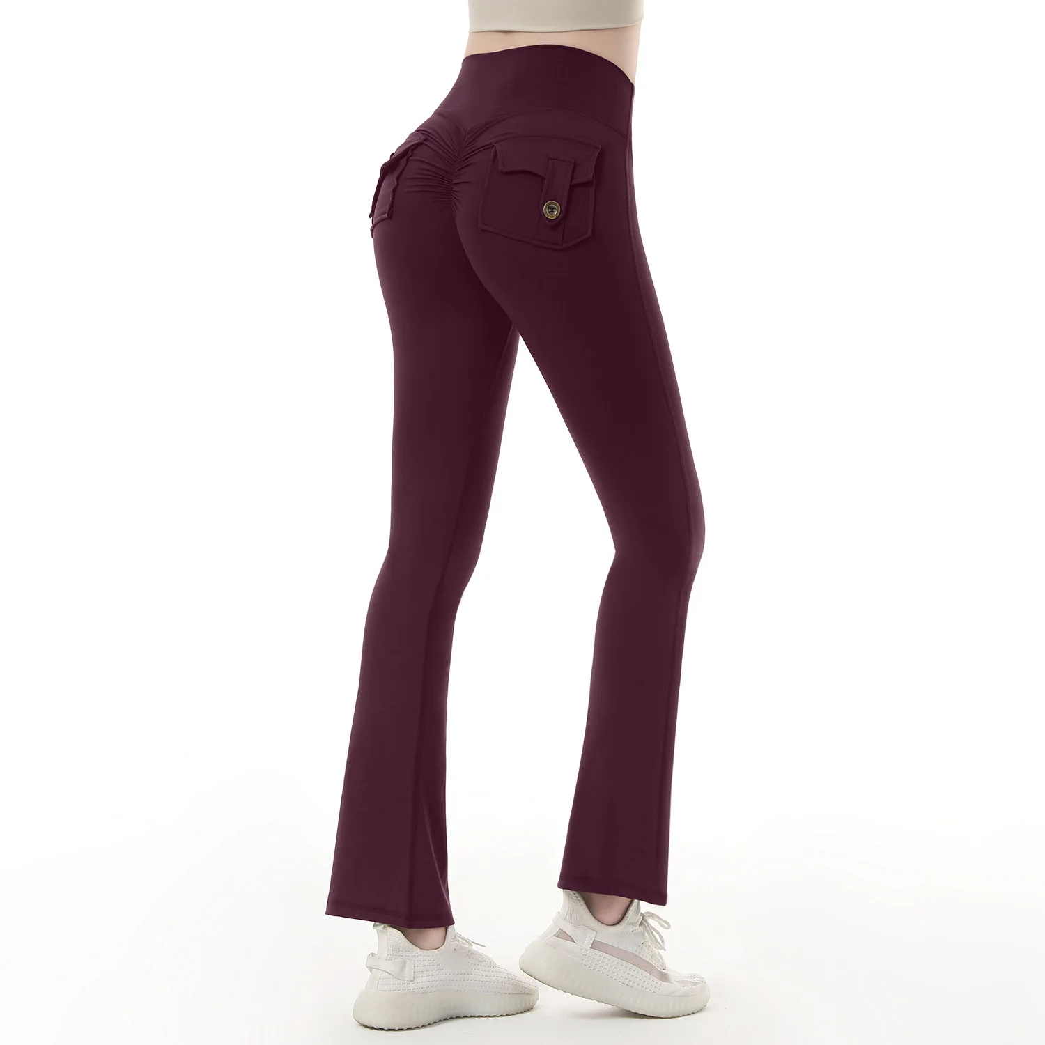 Plus Size High Waist Flared Cargo Yoga Leggings - 4-Way Stretch High Elasticity Women Fitness Pants with Pocket