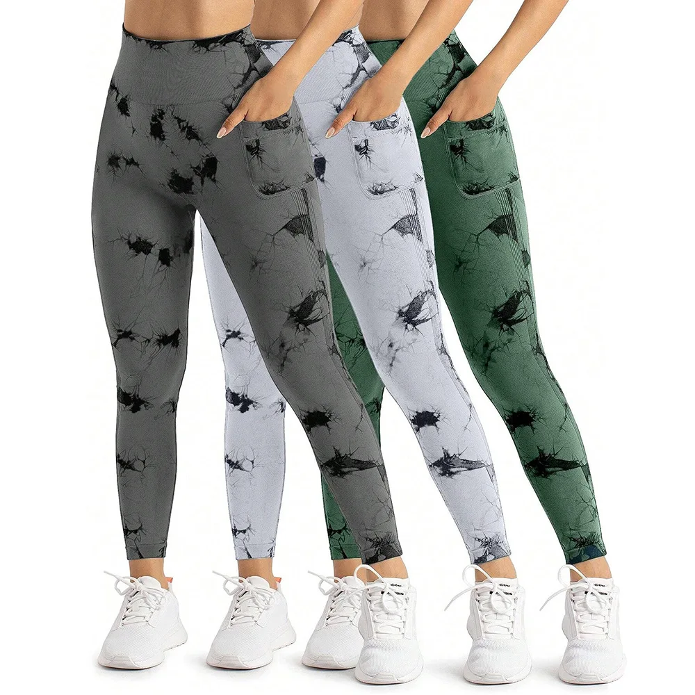 Tie Dye Seamless Yoga Leggings Scrunch Butt Lifting Sports Running Fitness Yoga Pants Pocket Gym Legging