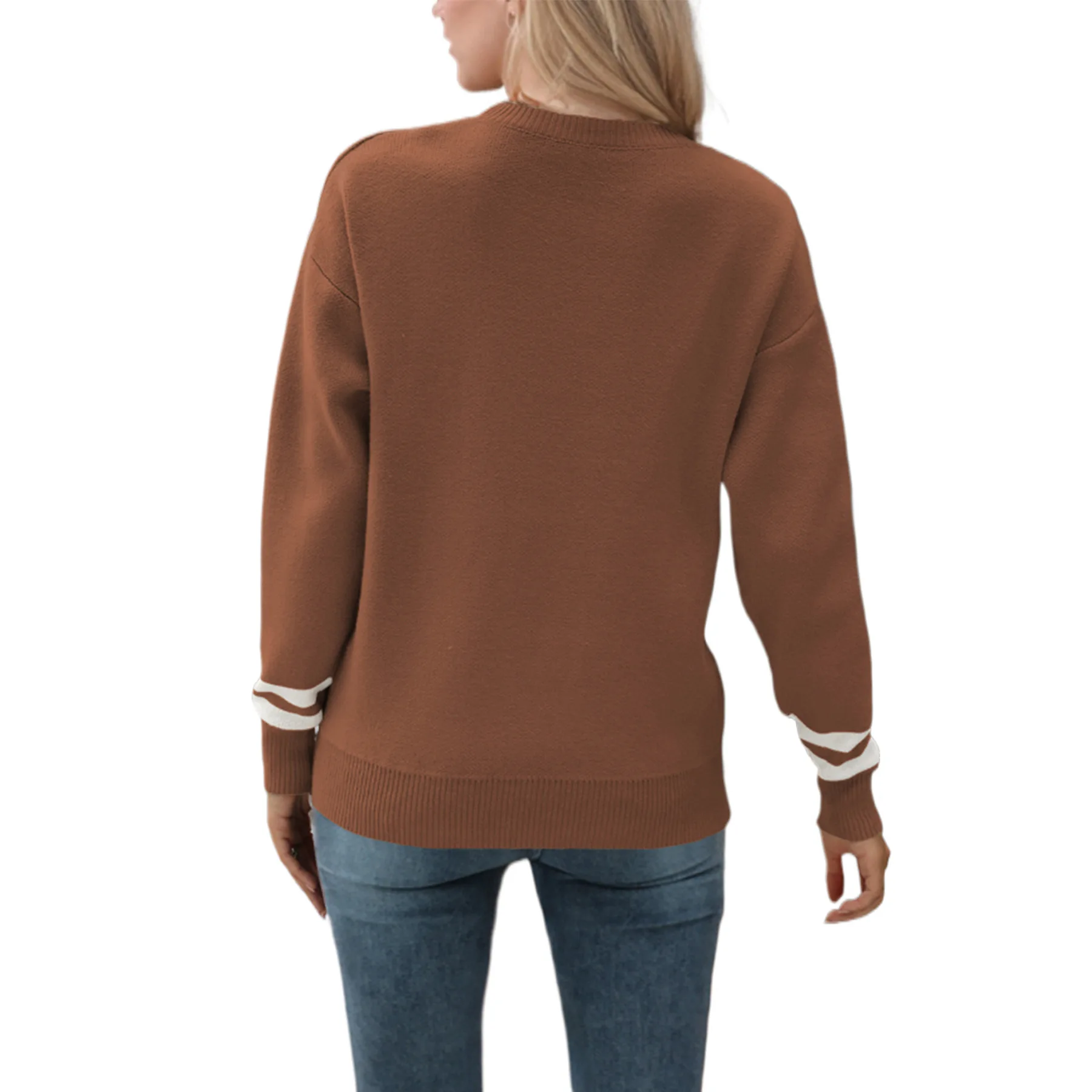 Long Sleeved Knitting Top Round Neck Letter Jacquard Fashionable Base Knit Pullovers Casual Women't Sweaters