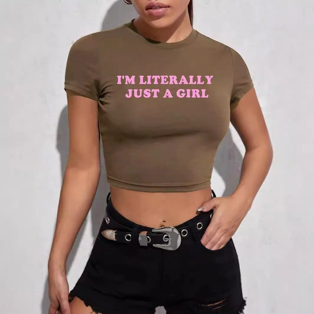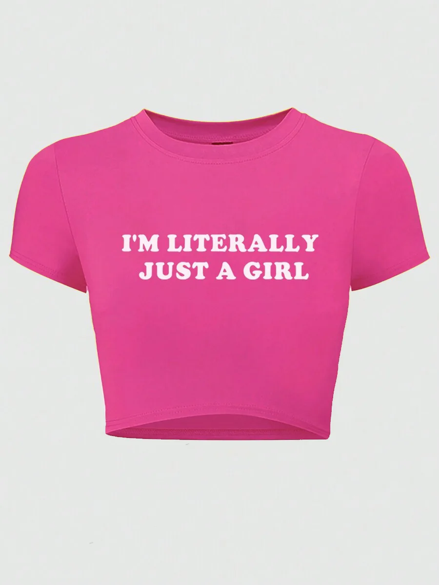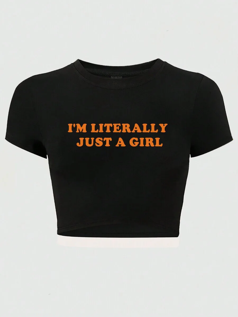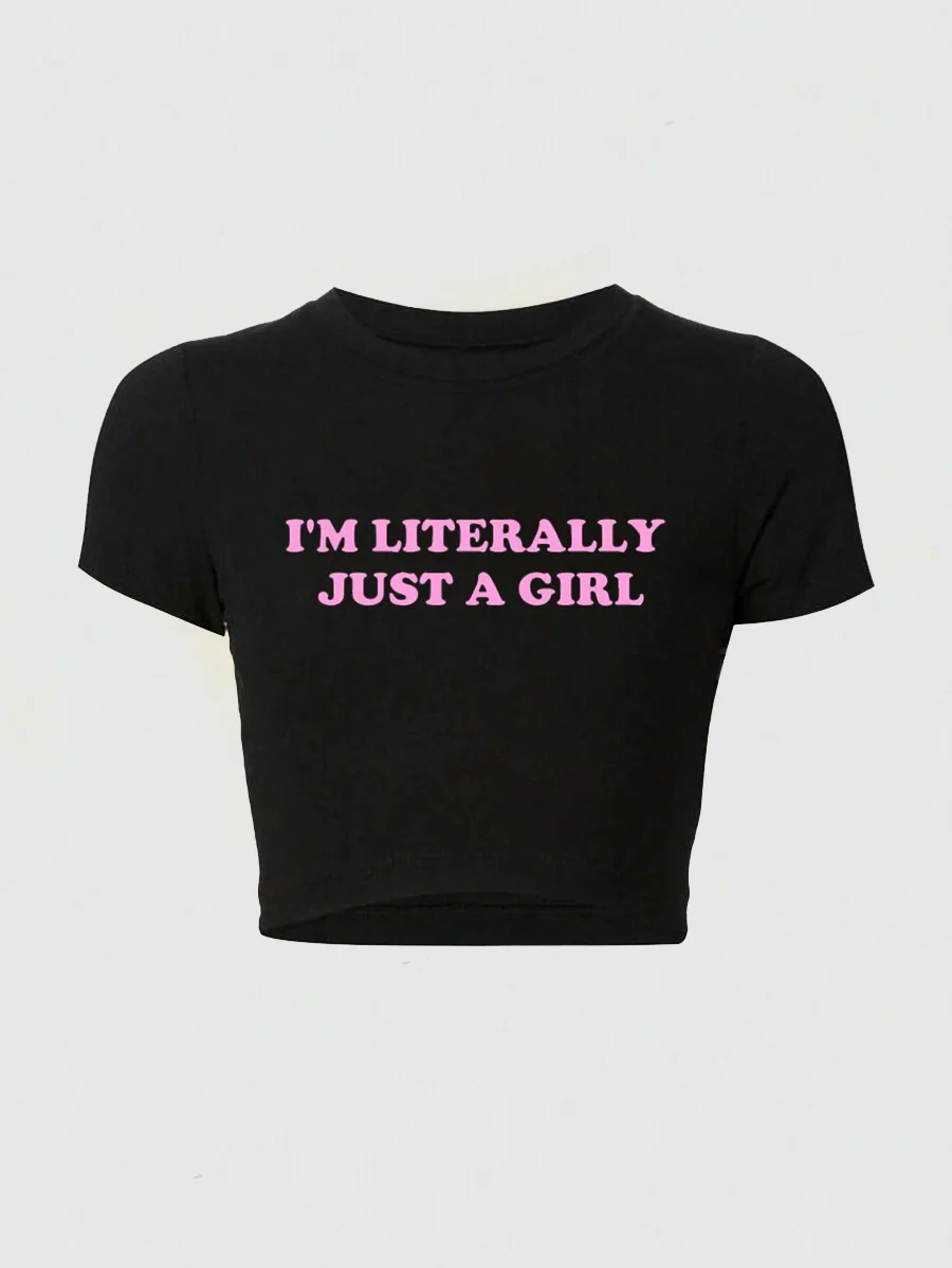 Letter Print Short t Shirt Summer Collection Women's Slim-Fit Crop Tops Casual Solid Fitted Knitted Y2K Elasticity t Top