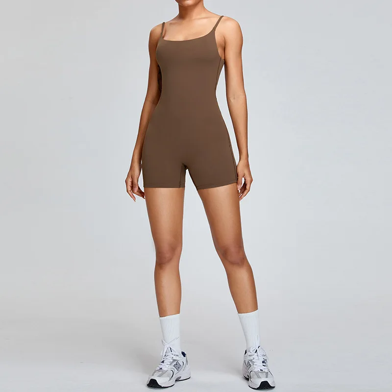 New naked feeling yoga bodysuit one piece Four sided dance tight fitting sports fitness short jumpsuit women