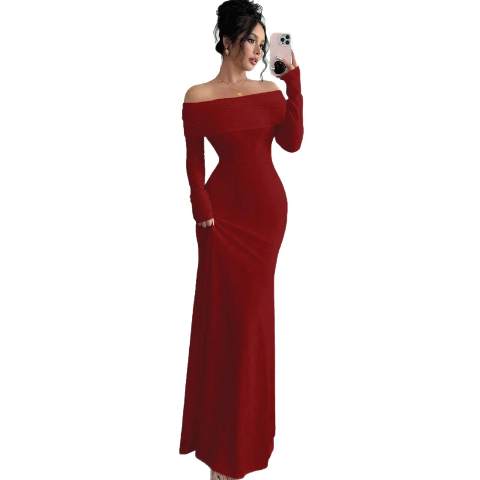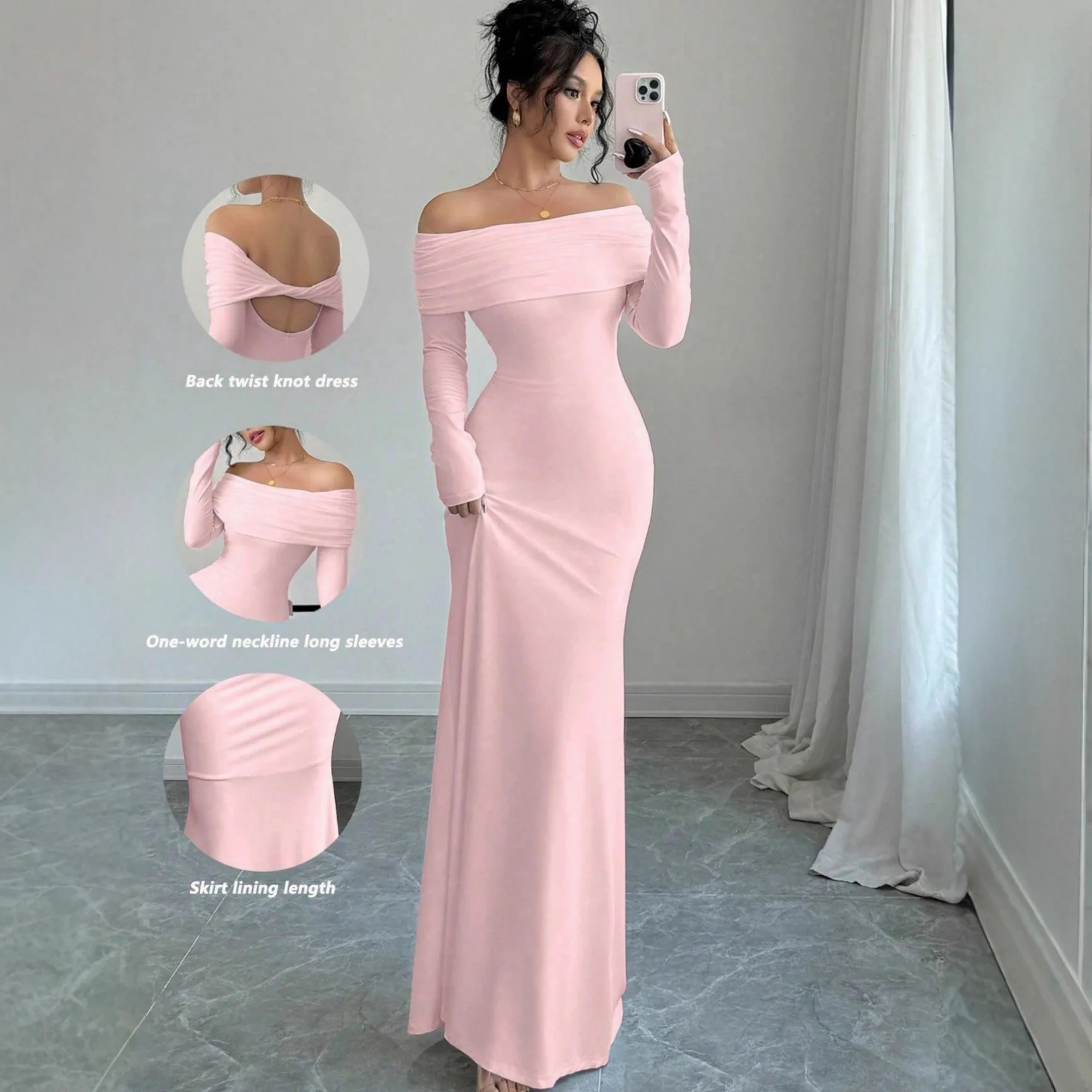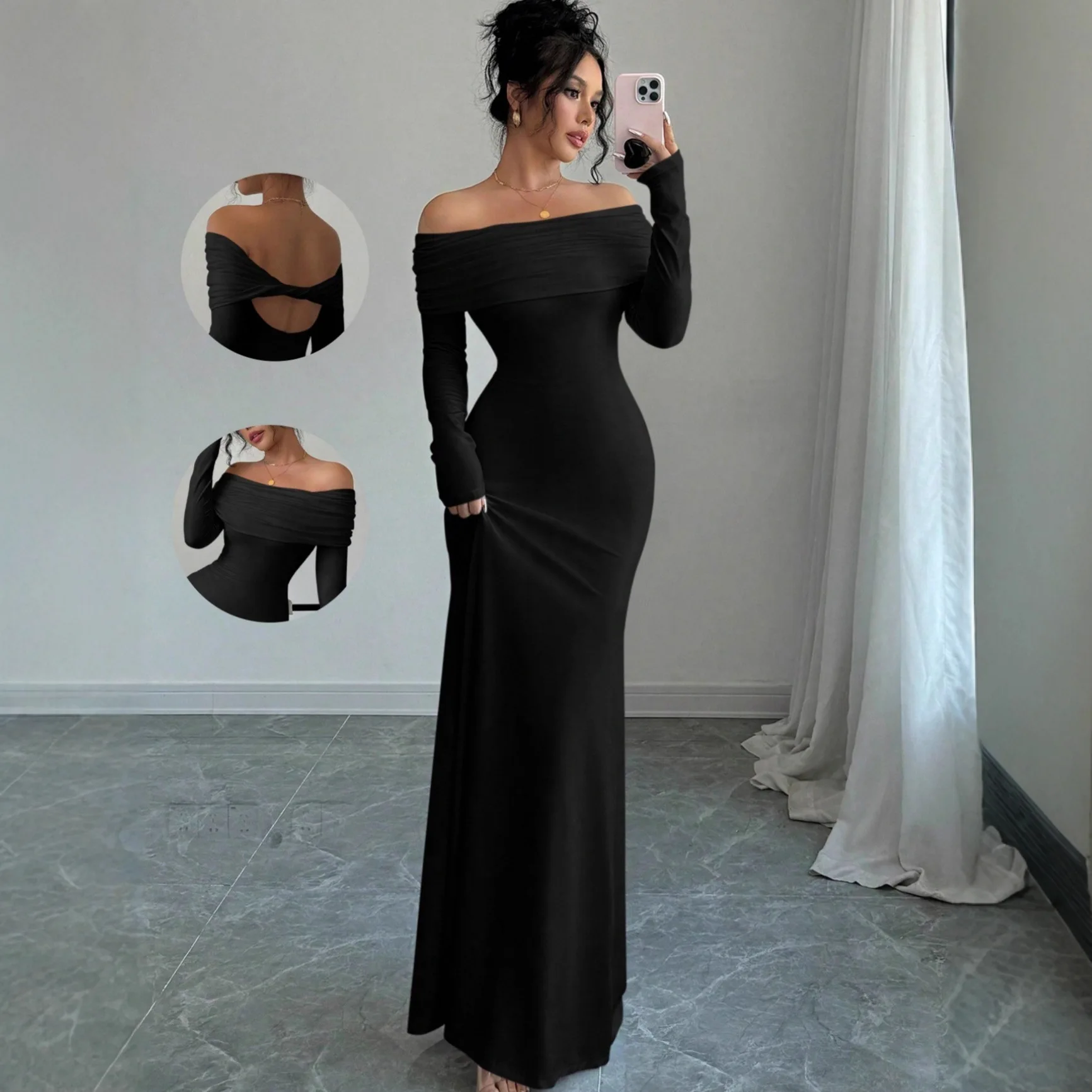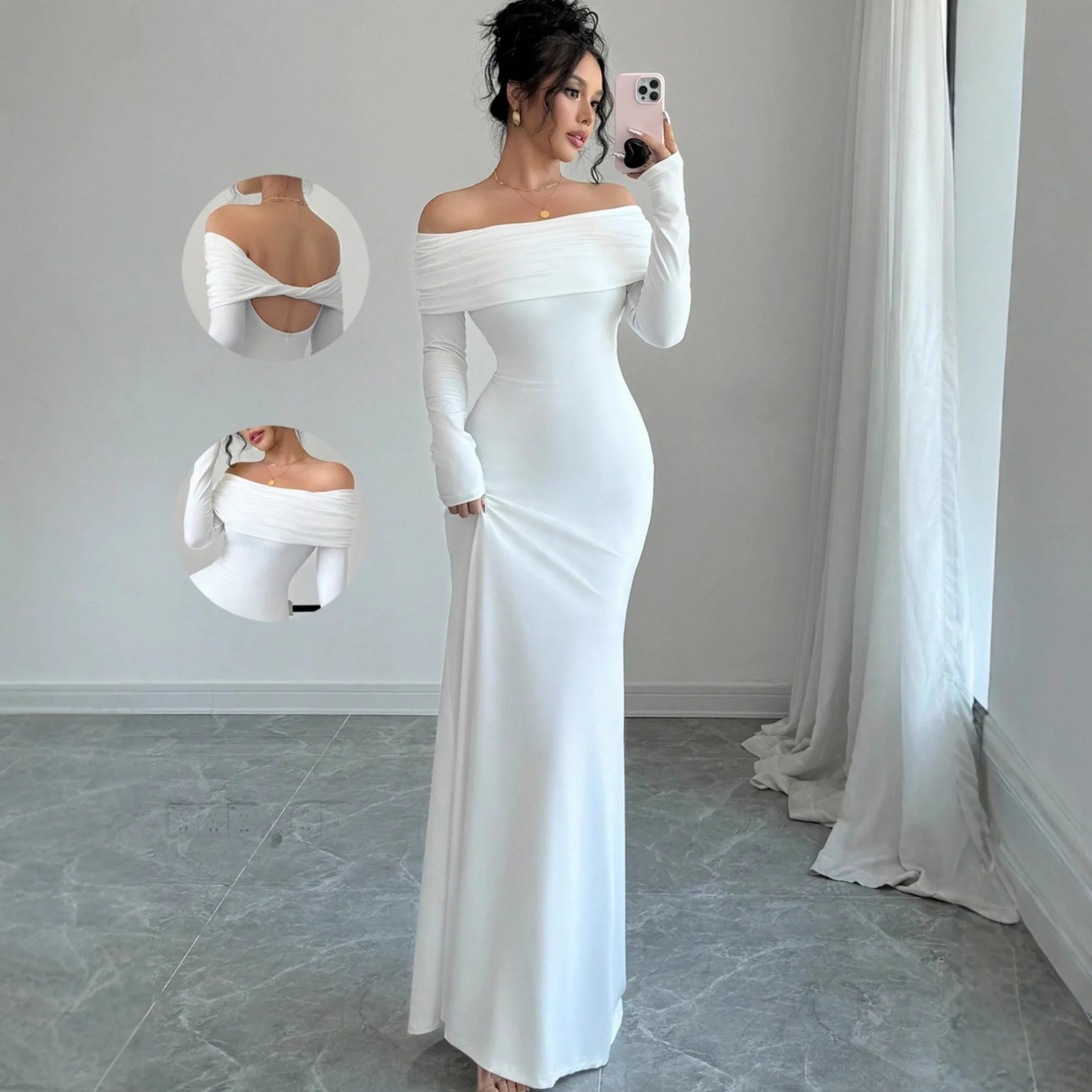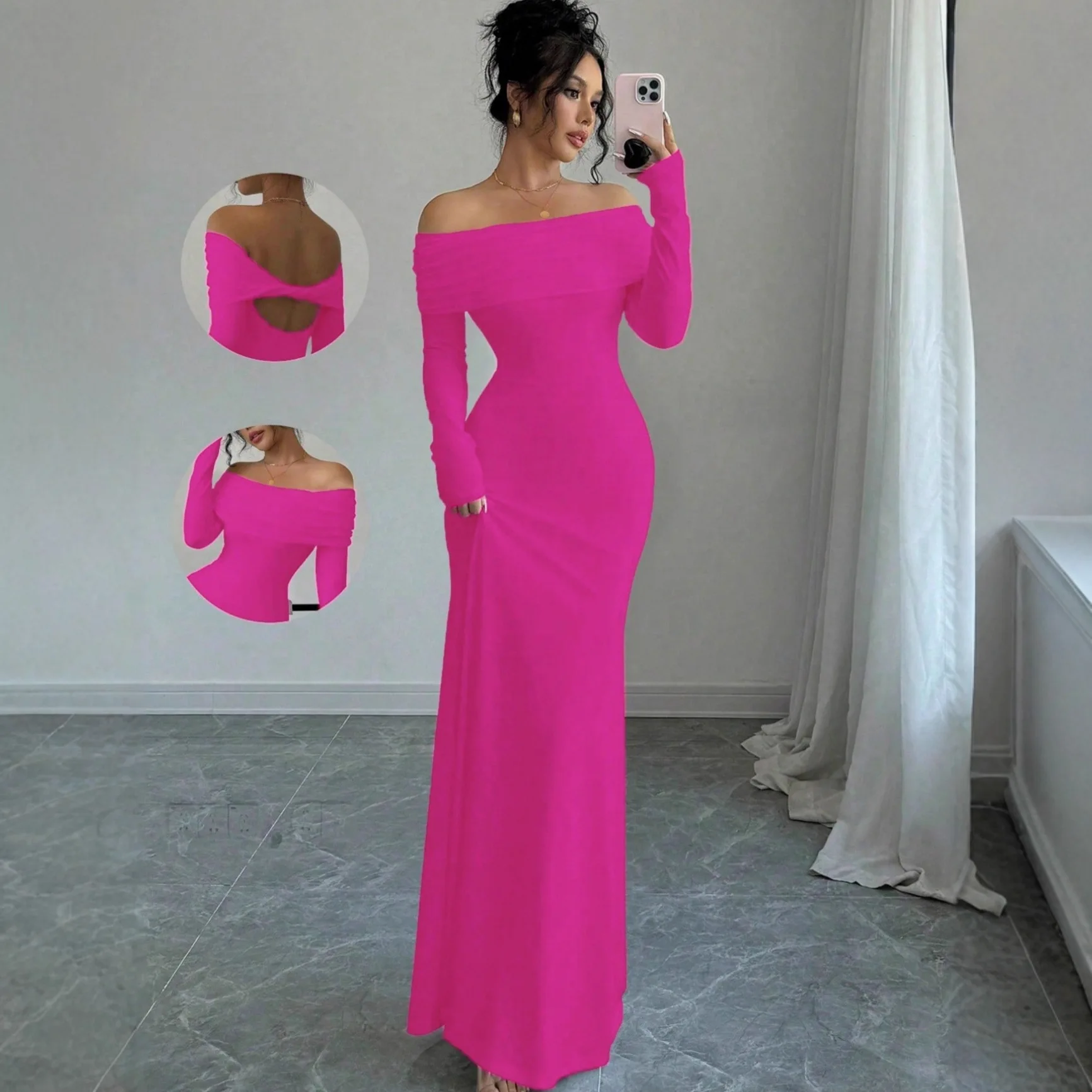 Slash Off Shoulder Long Dress Backless Fitting Hip Hugging women Dress Fashionable Elegant Evening Gown