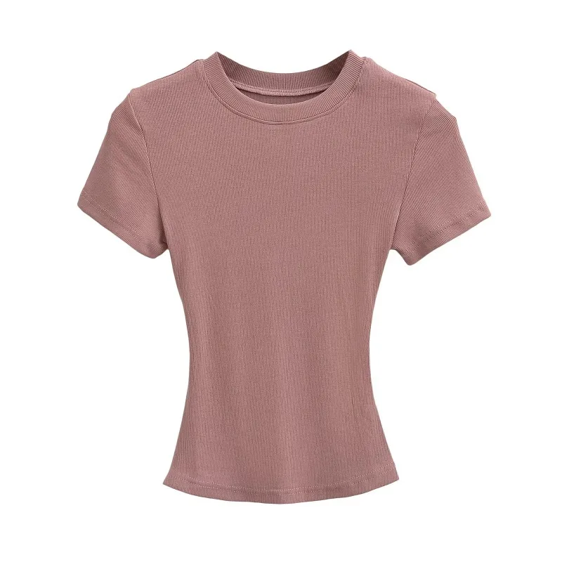 Solid Y2K Tee Tops Round Neck Rib Baby Tee Elastic Shoulder Short Sleeved T-shirt 2026 Summer New Collection Waist Cinching