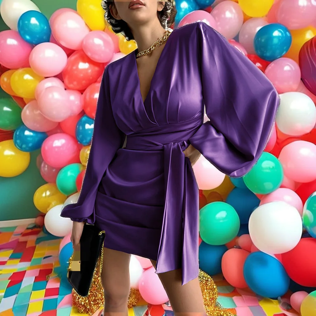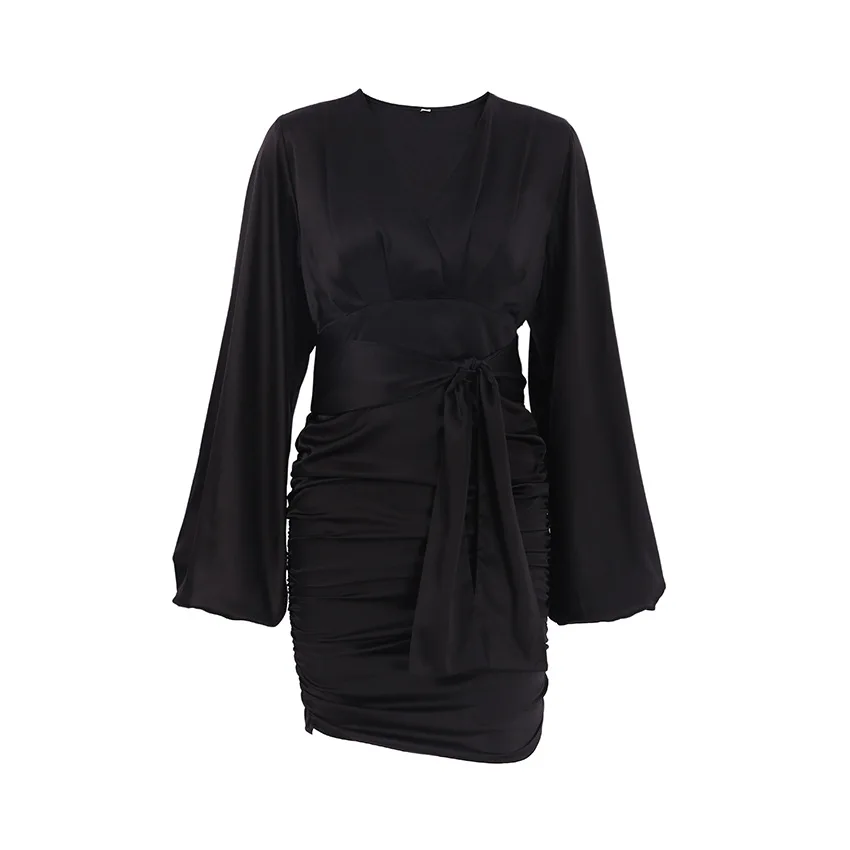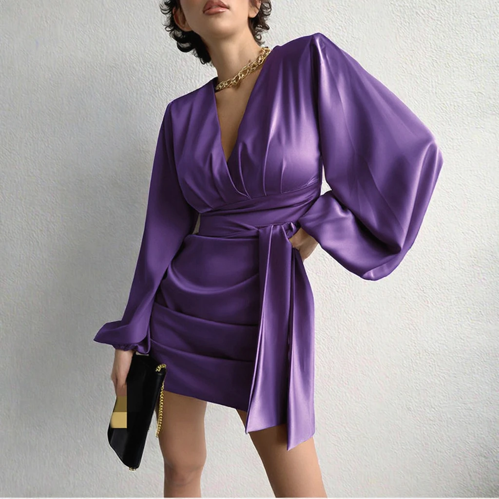2026 New French Luxury Satin Evening Dress V-Neck Slim Dress Temperament Plain Dyed for Casual Spring Autumn Winter Use Natural