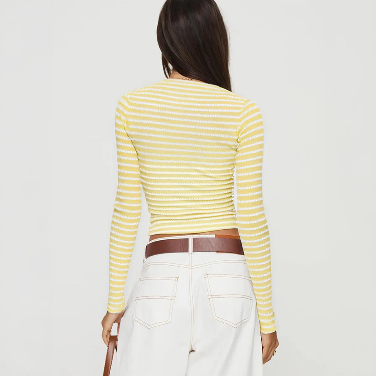 Y2K Crop Tops Slim Fitting Women's T-Shirts Long Sleeve Striped Knit Tee Top
