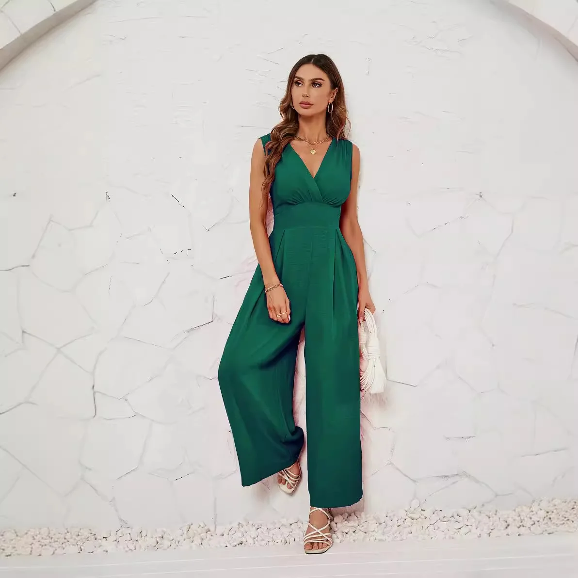 Sleeveless Jumpsuit V Neck Women's Jumpsuits Playsuits Lady Elegant Rompers Wide Leg Pants