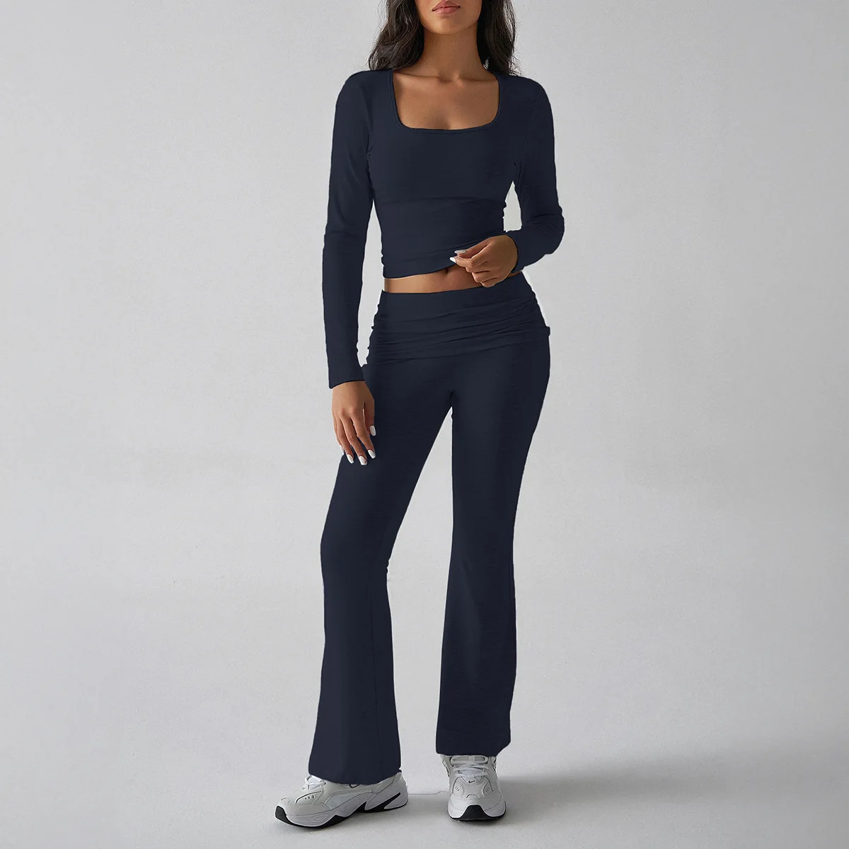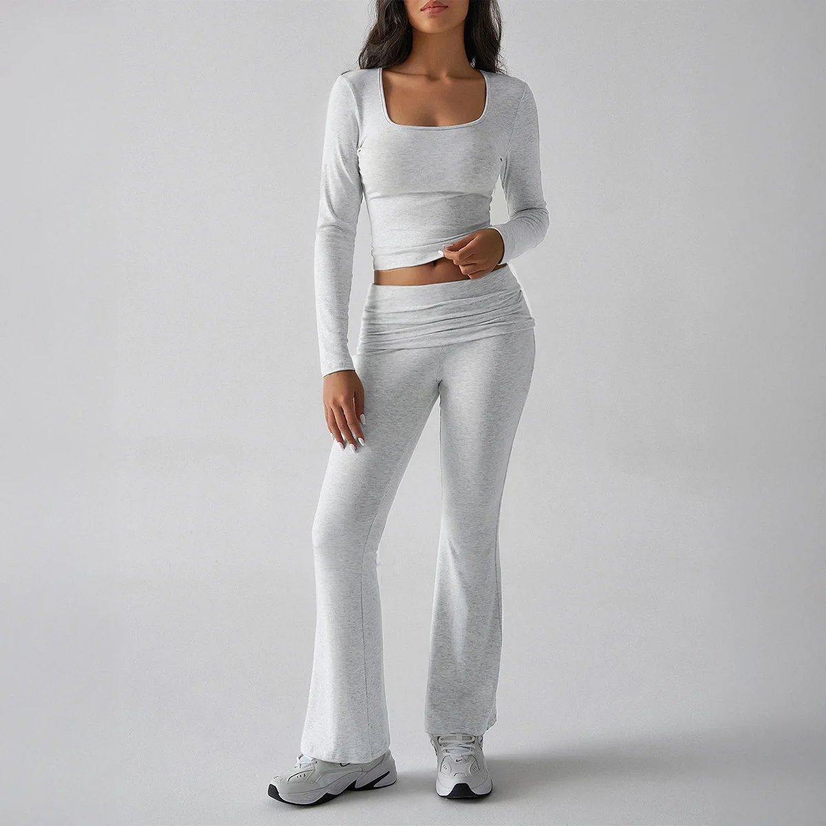 Y2K Casual Slim Fitting Women's Sets Long Sleeved Tee Top Slightly Flared Pants Two Pieces Long Set Ladies Suits