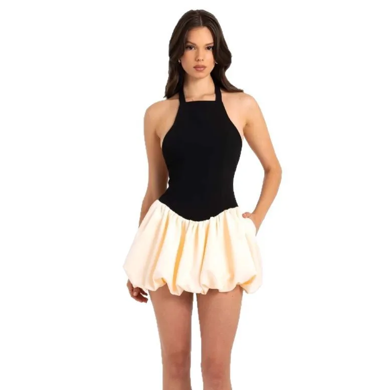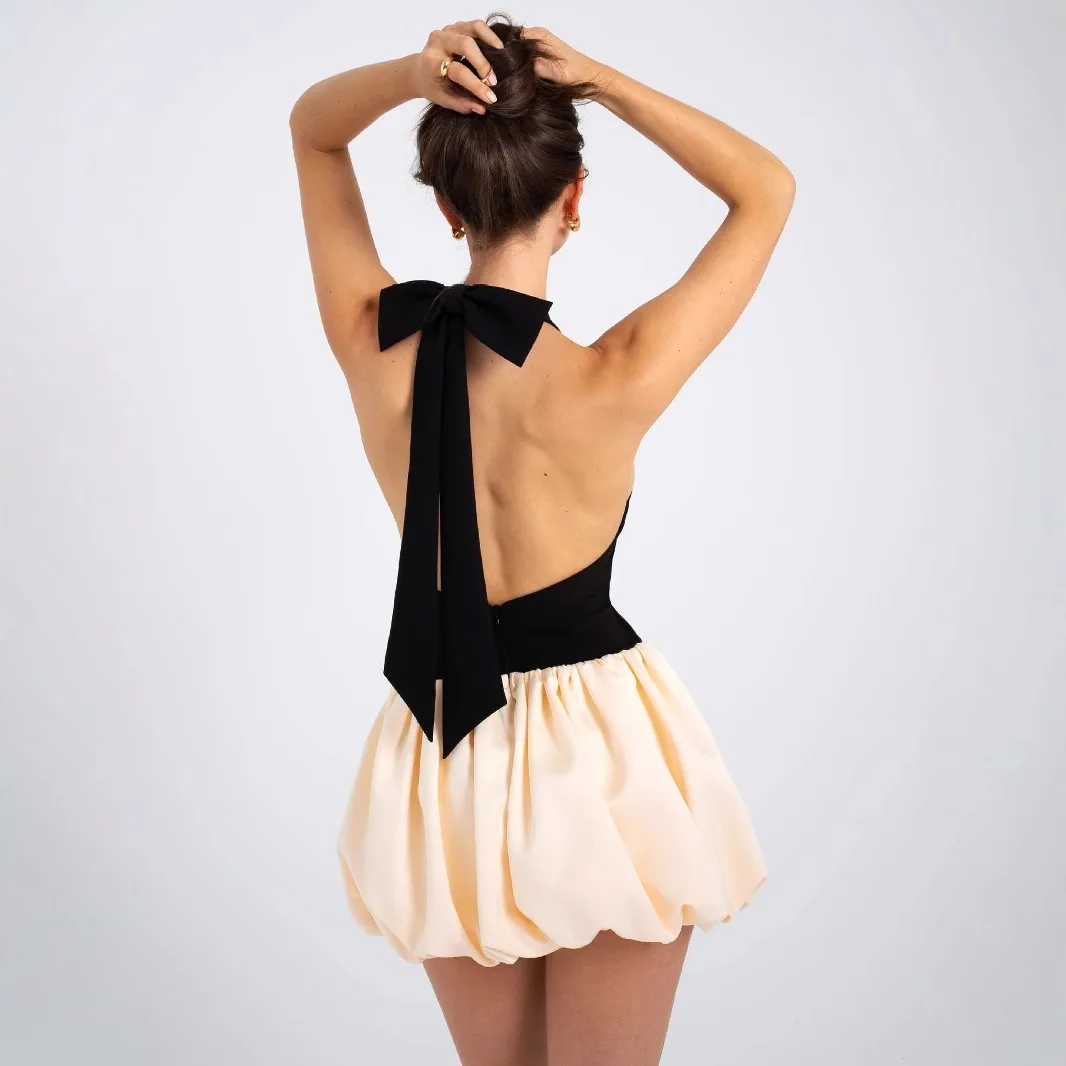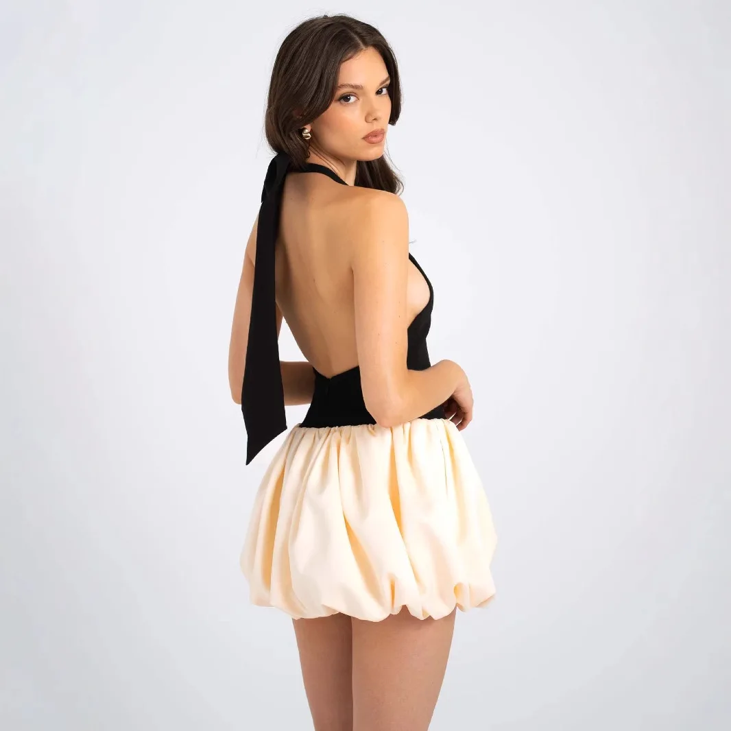 Sexy Patchwork a Line Skirt Slim Fit Backless Sexy Dress for Women Backless Halter Neck Mini Dress