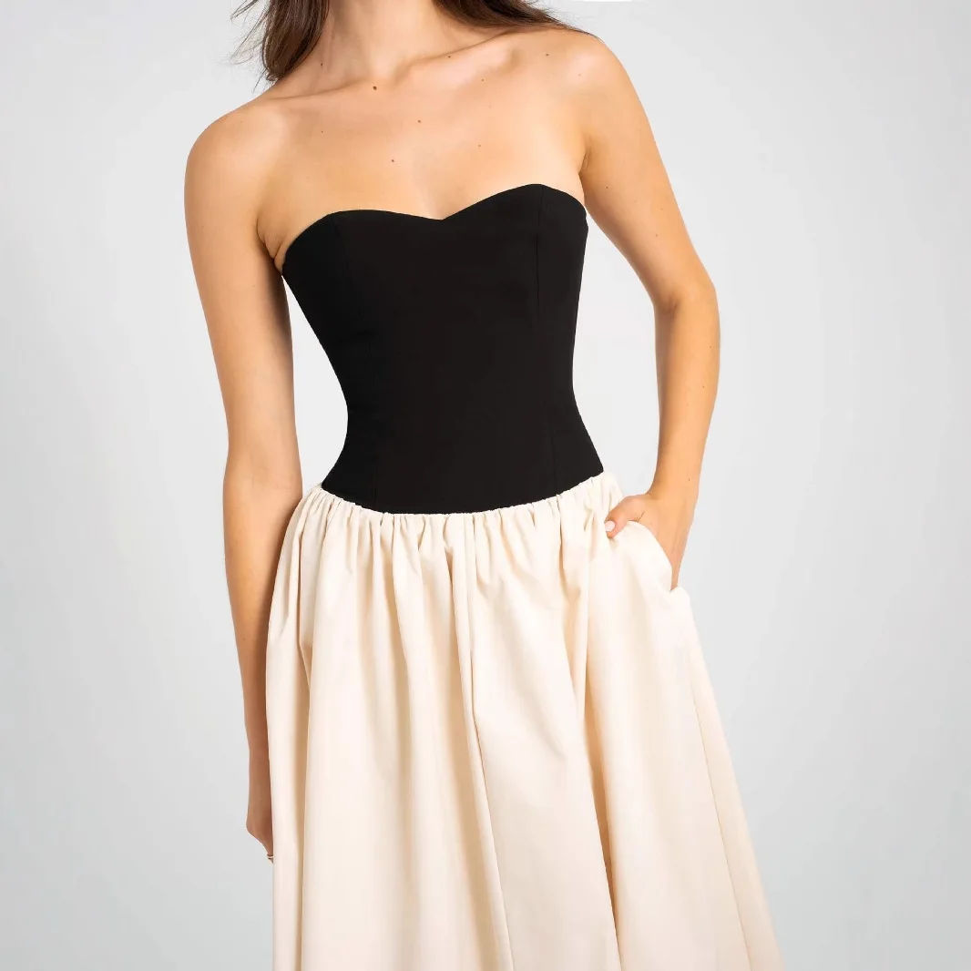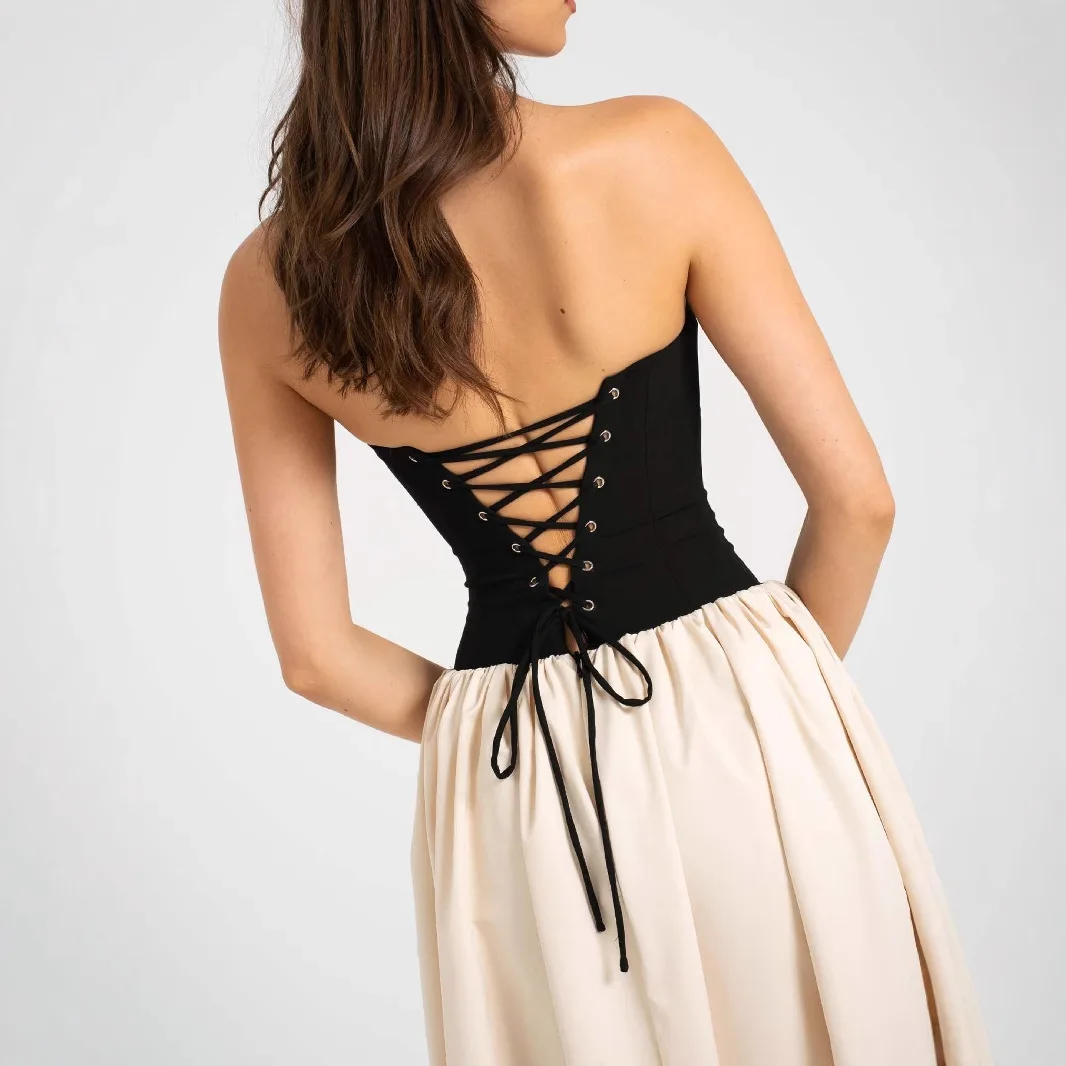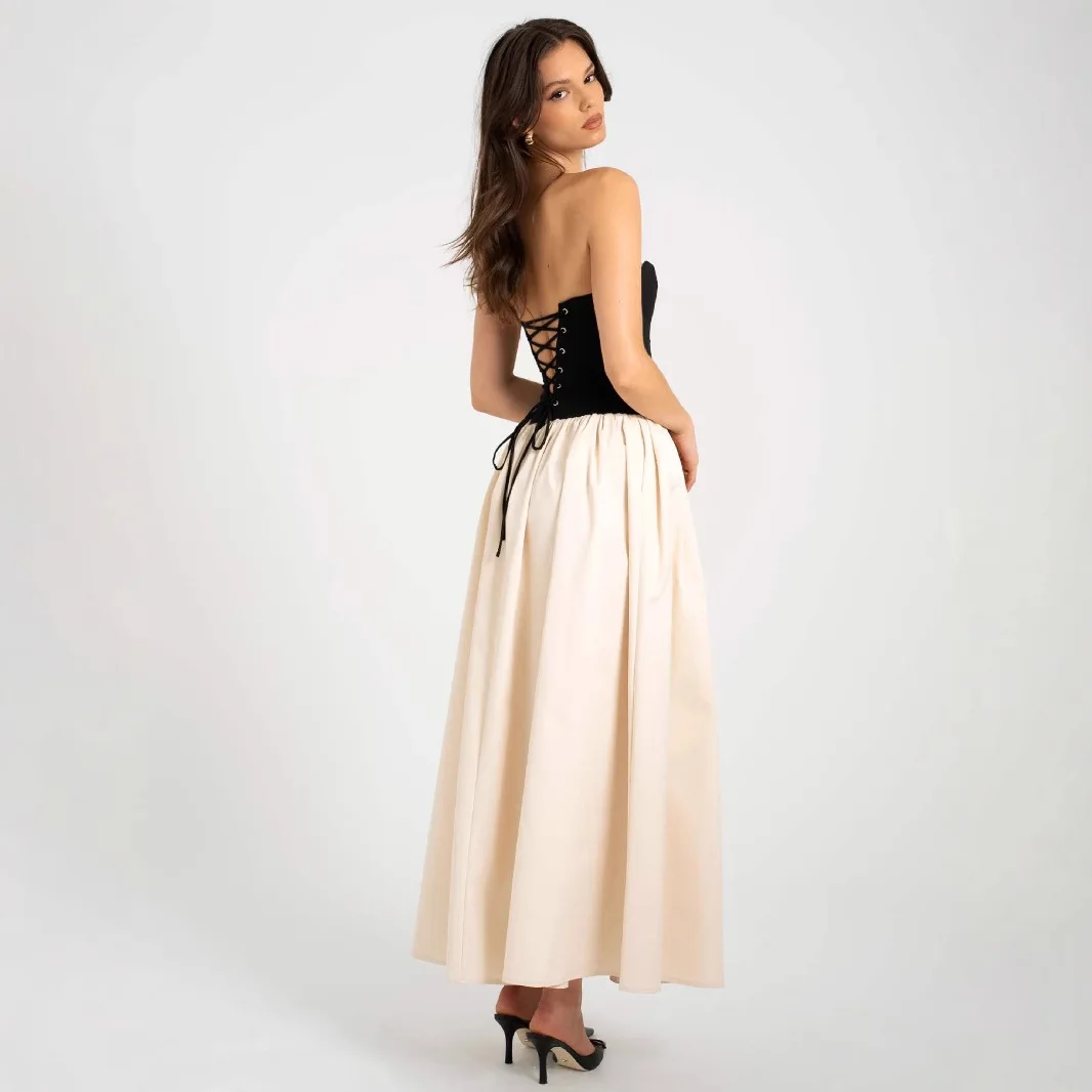 Color Blocked Strapless Party Dress Sleeveless Long Skirt for Women's Back Lace up Long Dresses Wholesale