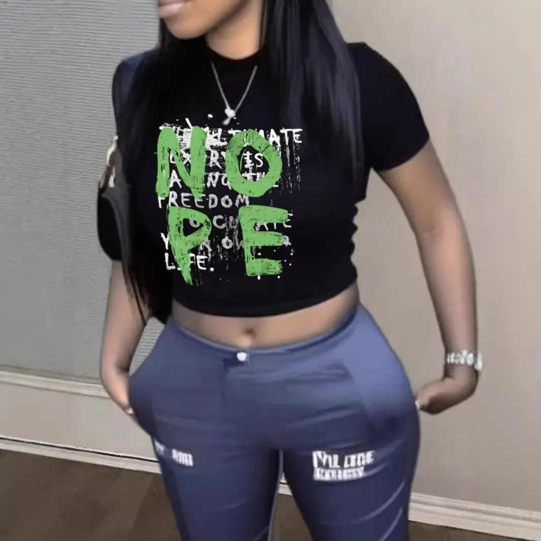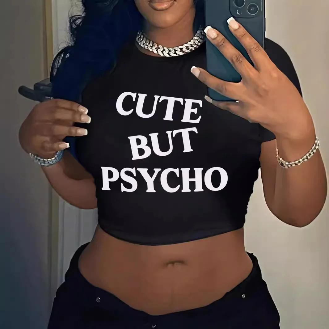 INS Summer Letter Print t Shirts 2026 Women's Slim-Fit Short-Sleeved T-Shirt Top Breathable Stripes Loose Crop Tops