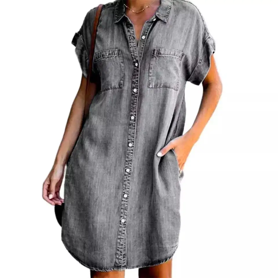 New Short Sleeved Slim Short Dress Women Washed Denim Dress
