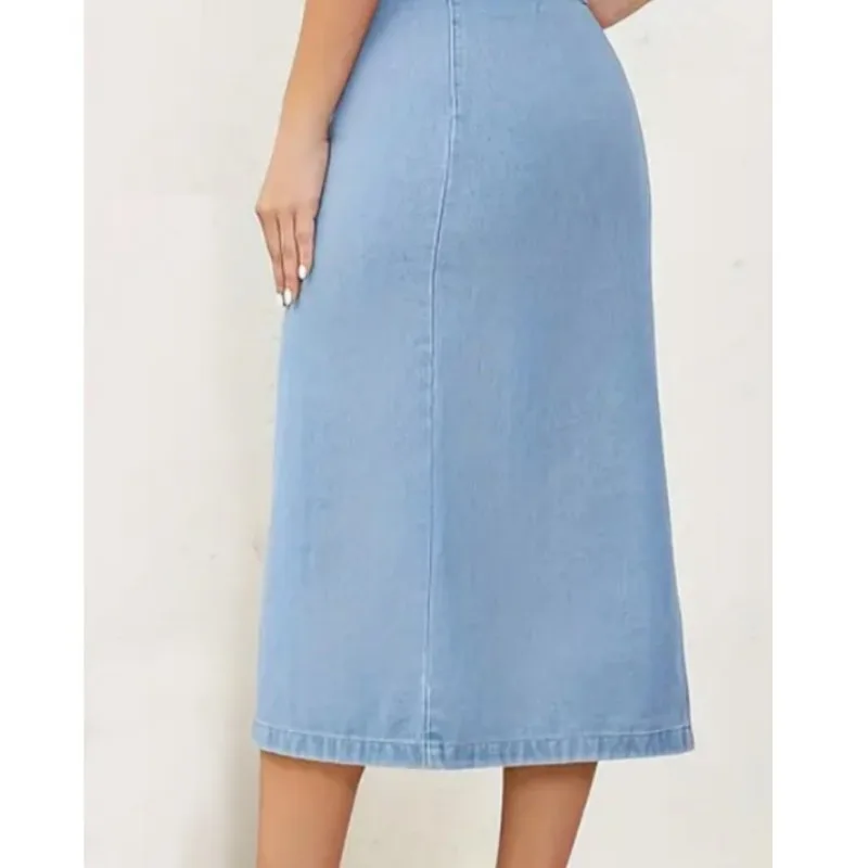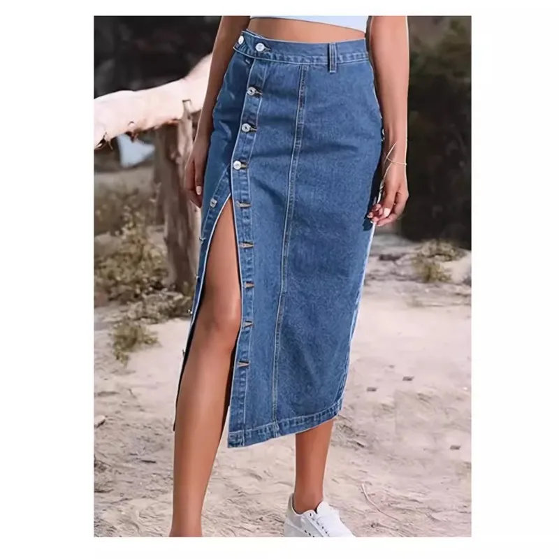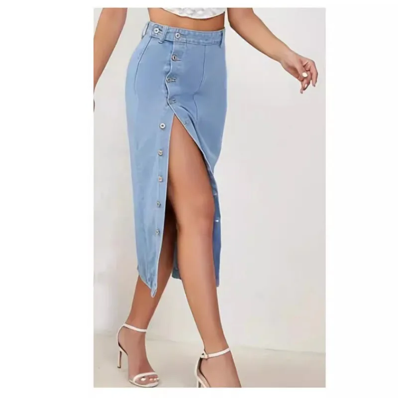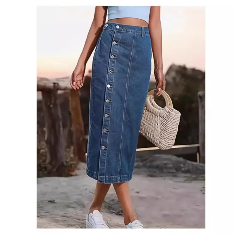 Women's High-Waist Multi-Button Denim Skirt Elegant & Streetwear Style Breathable Design for Summer
