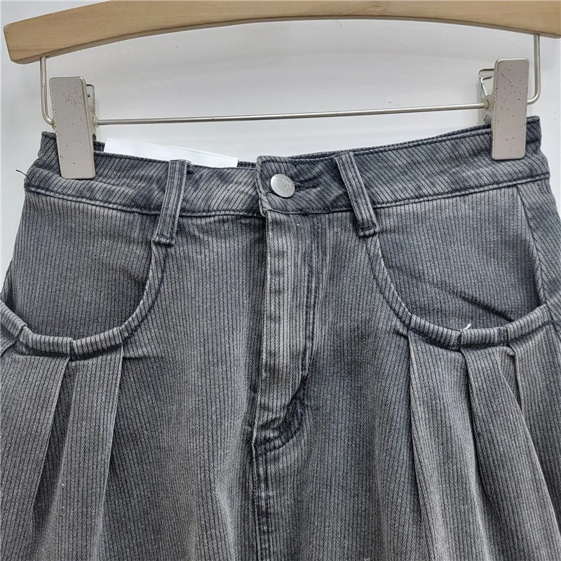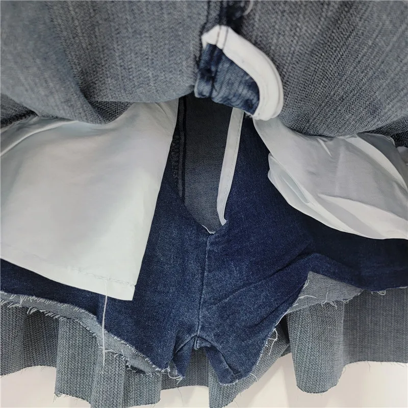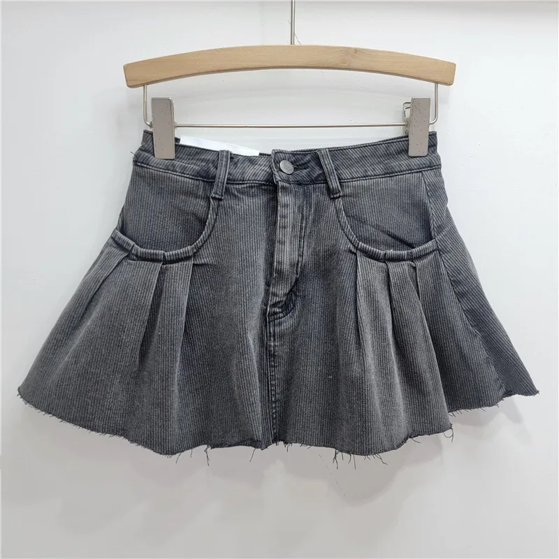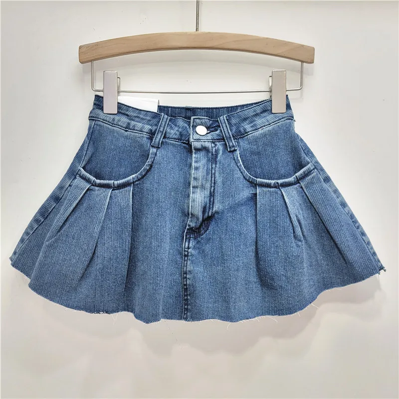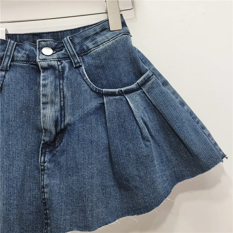 Hot Trending Casual Denim Pleated Mini Skirt Women Solid Color a Line Jeans Elastic Female Short Jean Skirts for Women