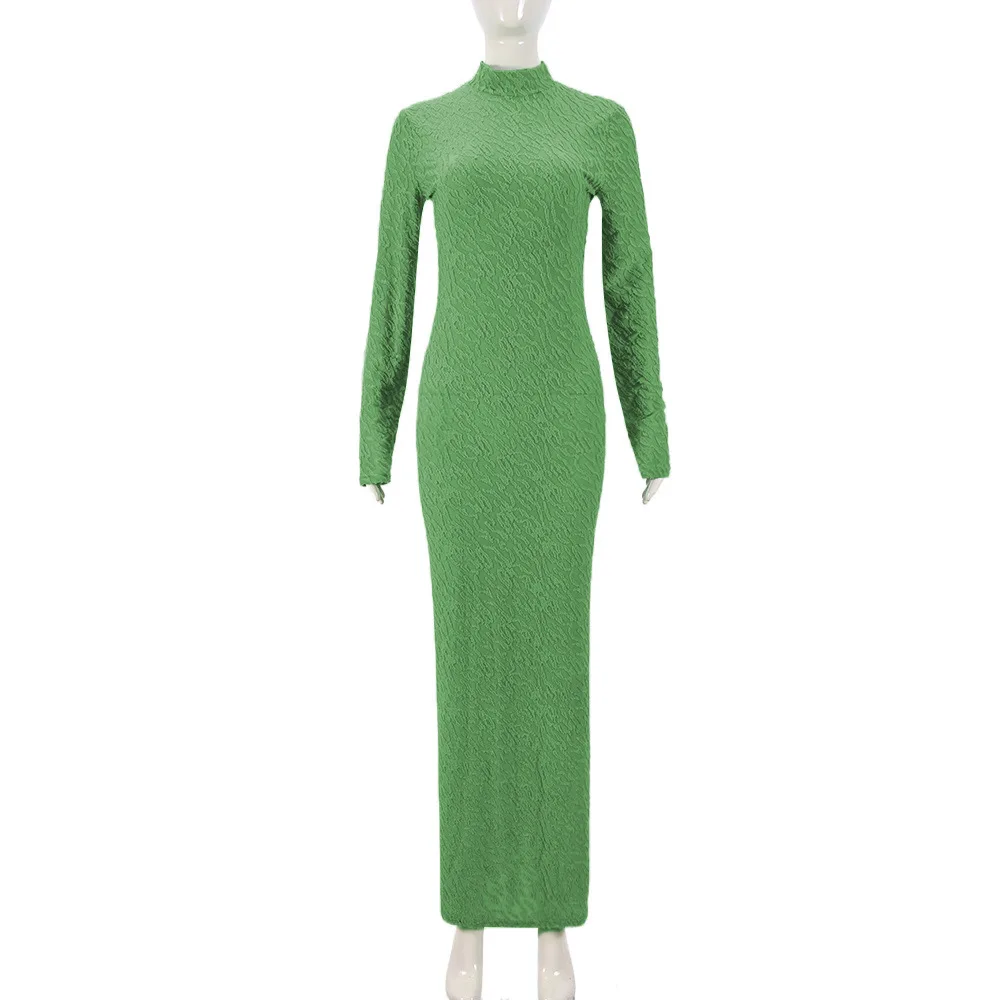 ZYHT 73902 Dark Green Blue Long Sleeve Simple Elegant Evening Dress Customize High End Women Clothing Manufacturer