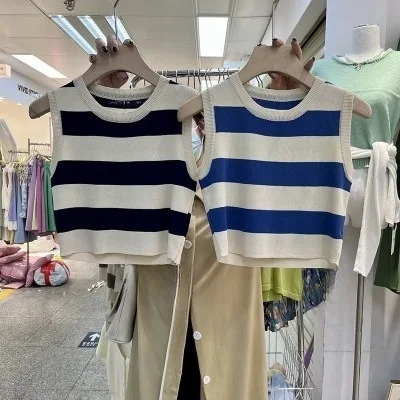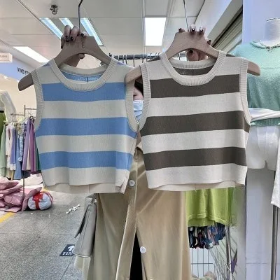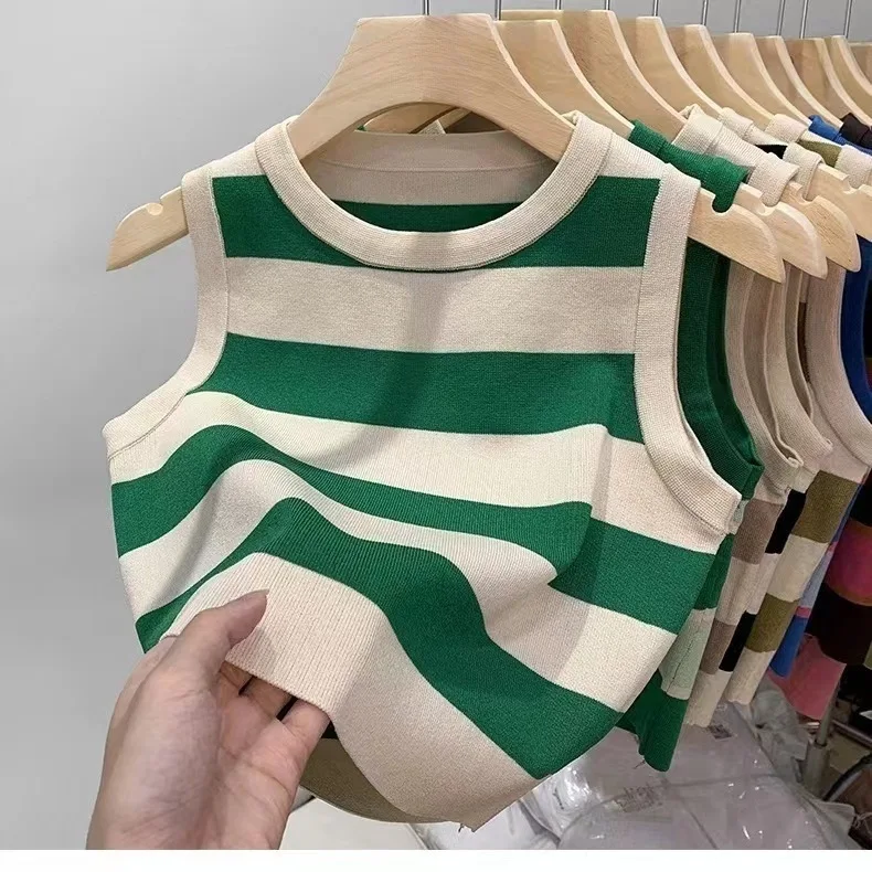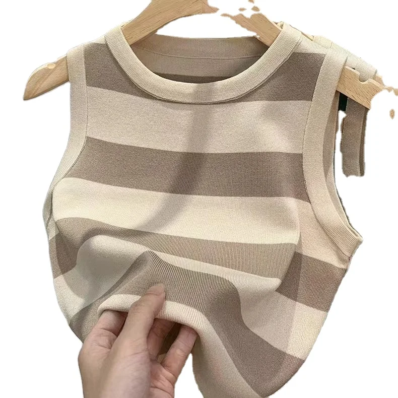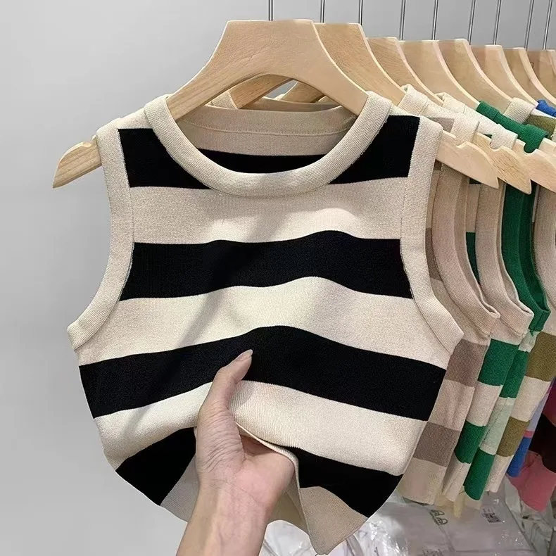 2026 Summer Women's Short Knitted Striped Ribbed Tank Top Breathable and Sustainable