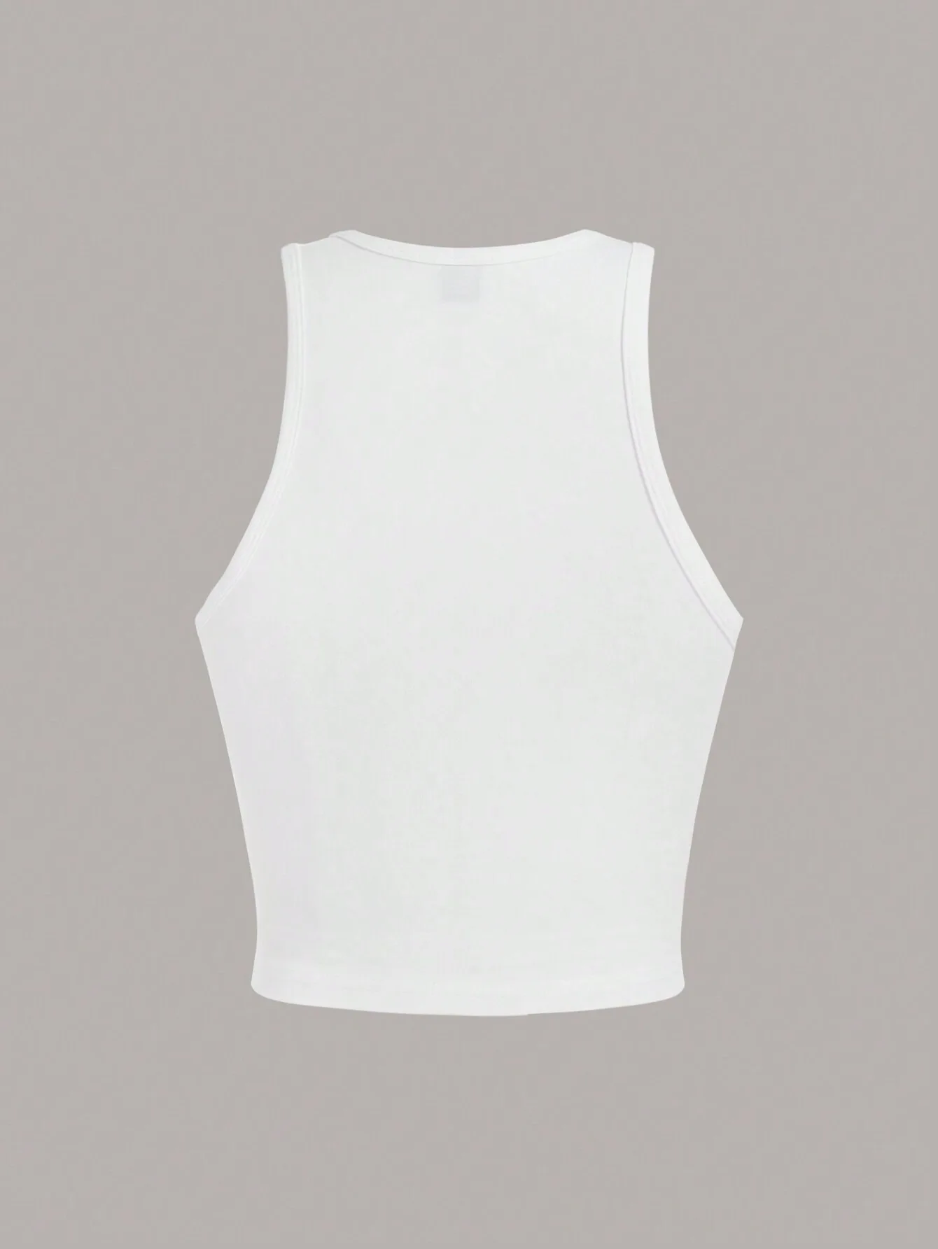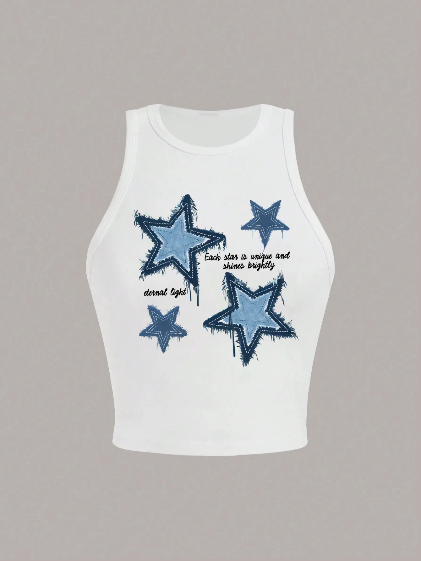 Women's tank Top Summer Sleeveless Spice Girl Vest Casual Minimalist Star Pattern Round Neck Tight Short Vest with Front Logo