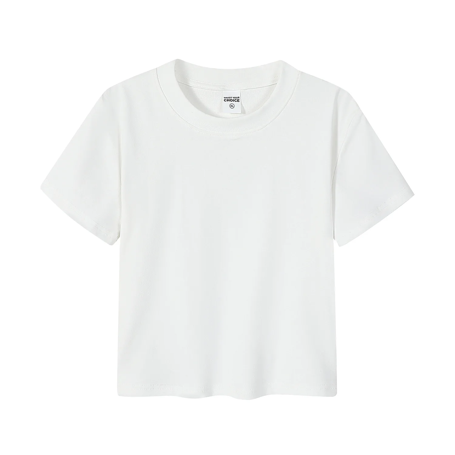 Short Sleeve Slim-Fit Top for Women 230g Summer Cotton T-Shirt Solid Knitted Women's Crop Top