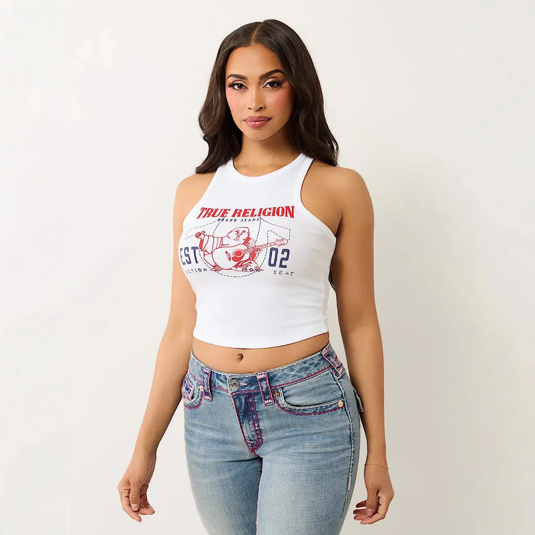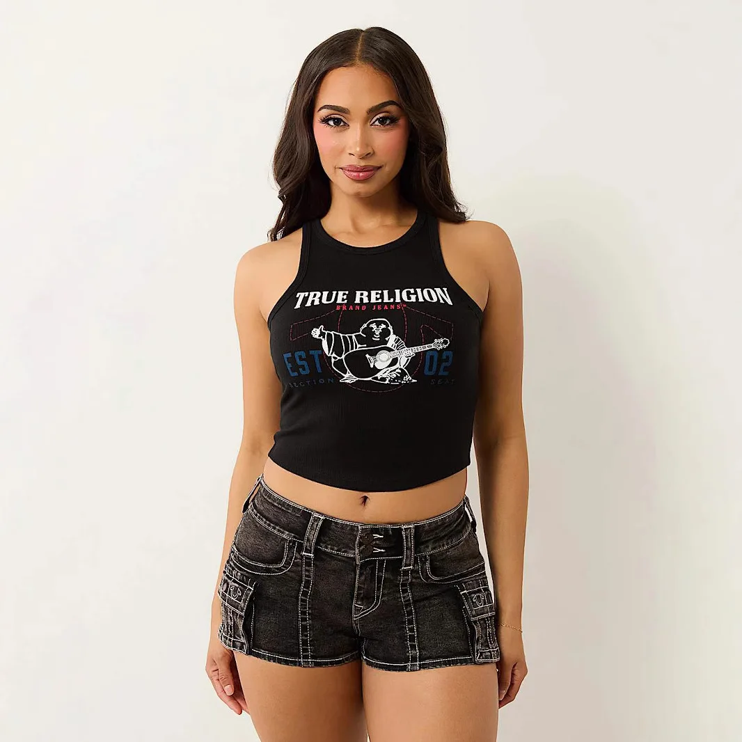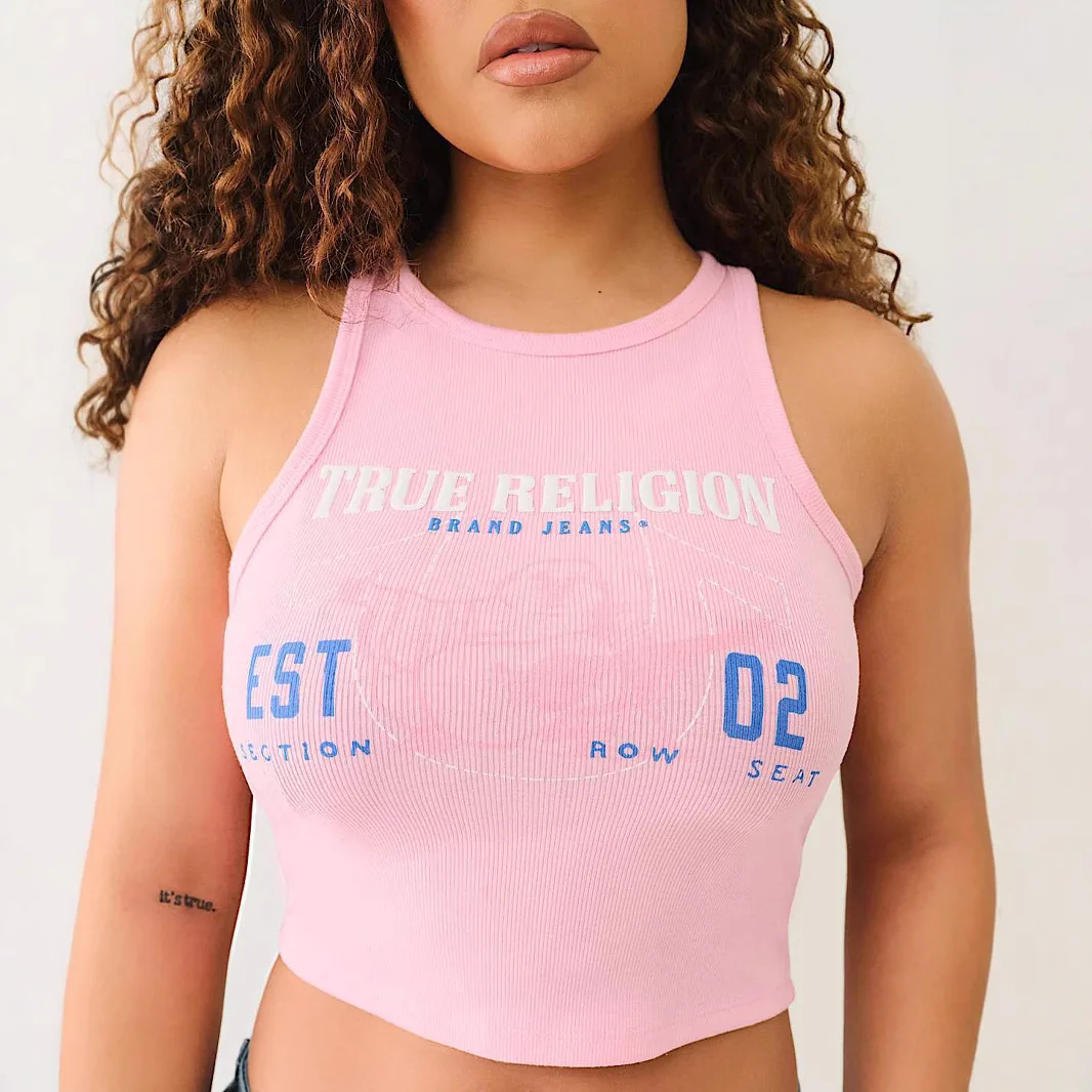 2026 New Print Tank Top Women's Casual Printed Pit Strip Vest Knitted Fabric Short Length with Front Logo