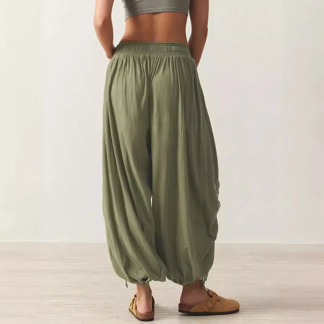 Women's Comfortable Casual Trousers Elastic Waist Drawstring Lace-up Lantern Pants with a Relaxed Feel Breathable Cropped Pants