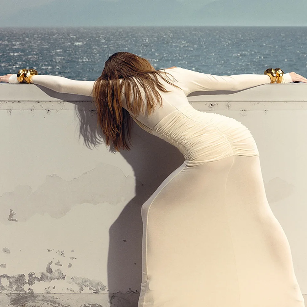 2026 New Long Sleeve Sexy Mesh Perspective Dress Fashion Hot Girl Pleated Slim Dress Solid