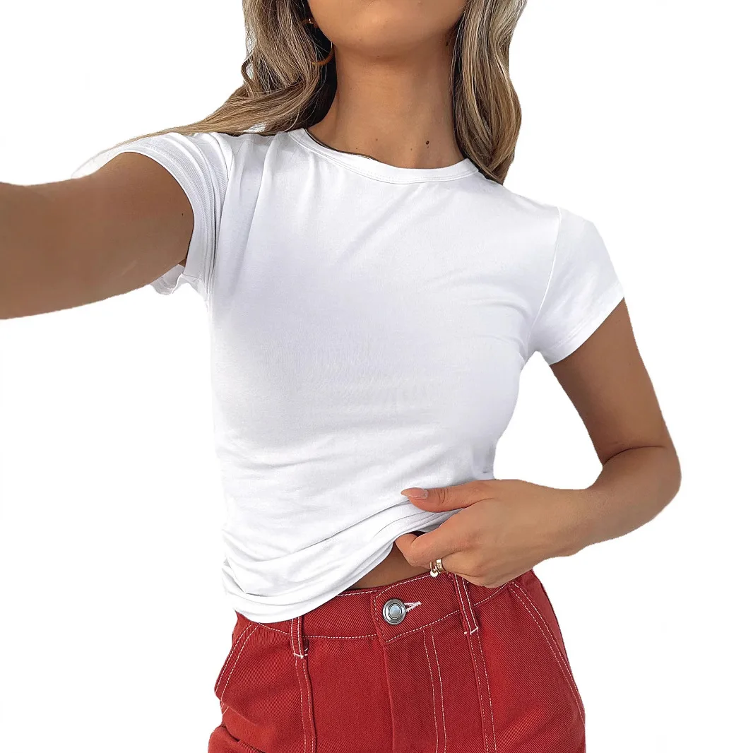 Y2K Women's Cotton T-Shirt Versatile Breathable Moisture Wicking Short Sleeved Stretch Tee Tops Summer Print XL Size