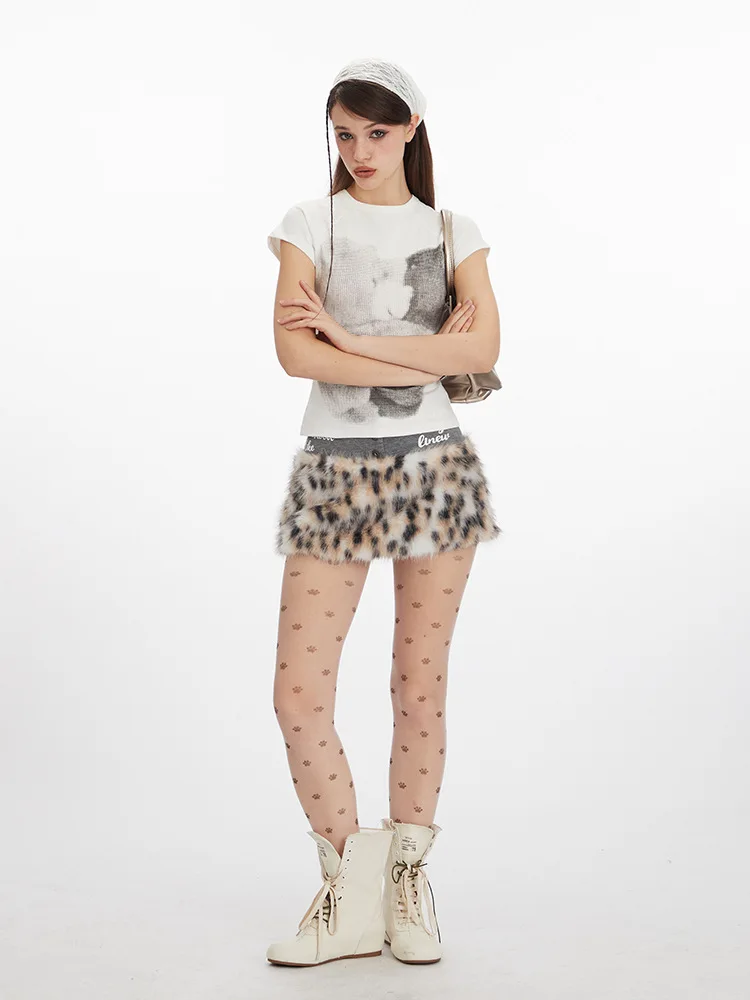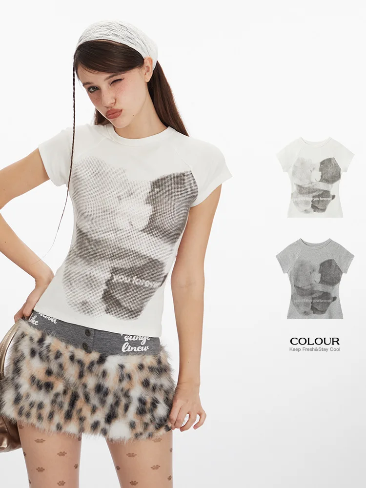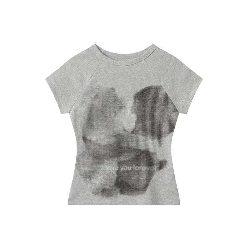 Women's Summer Casual Bear Printed Short-Sleeved T-Shirt Fashion Top Knitted Tess Tops Loose Fit
