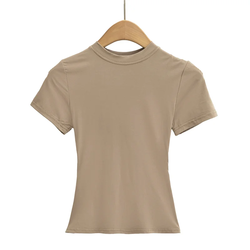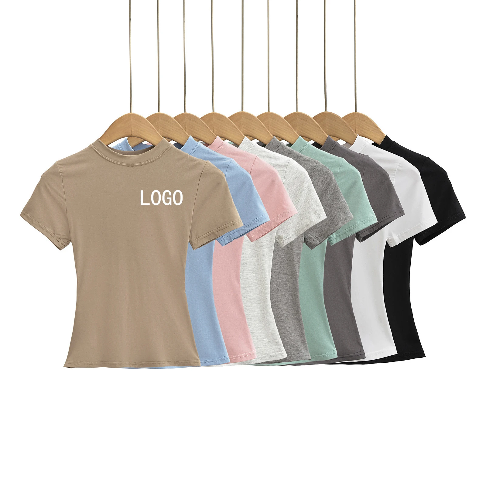 Thin t Shirt for Girls pink Round Neck Short Sleeved Basic T-shirt for Women in Summer Cotton Slim Fit Baby Tee Add logo