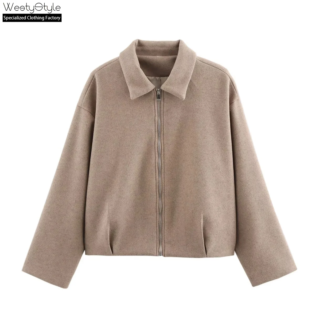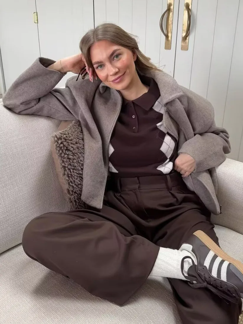 Foreign Trade Wholesale Winter European American Style Fashion Blazer Knitted Front Eco-Friendly Full Sleeve Soft Solid Zipper