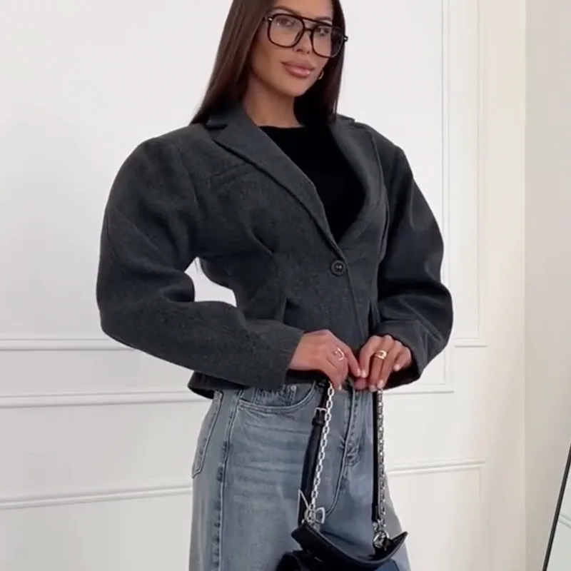 European American Women's Casual Clothing Autumn New Double Breasted Full Sleeve Suit Collar Woolen Coat Polyester