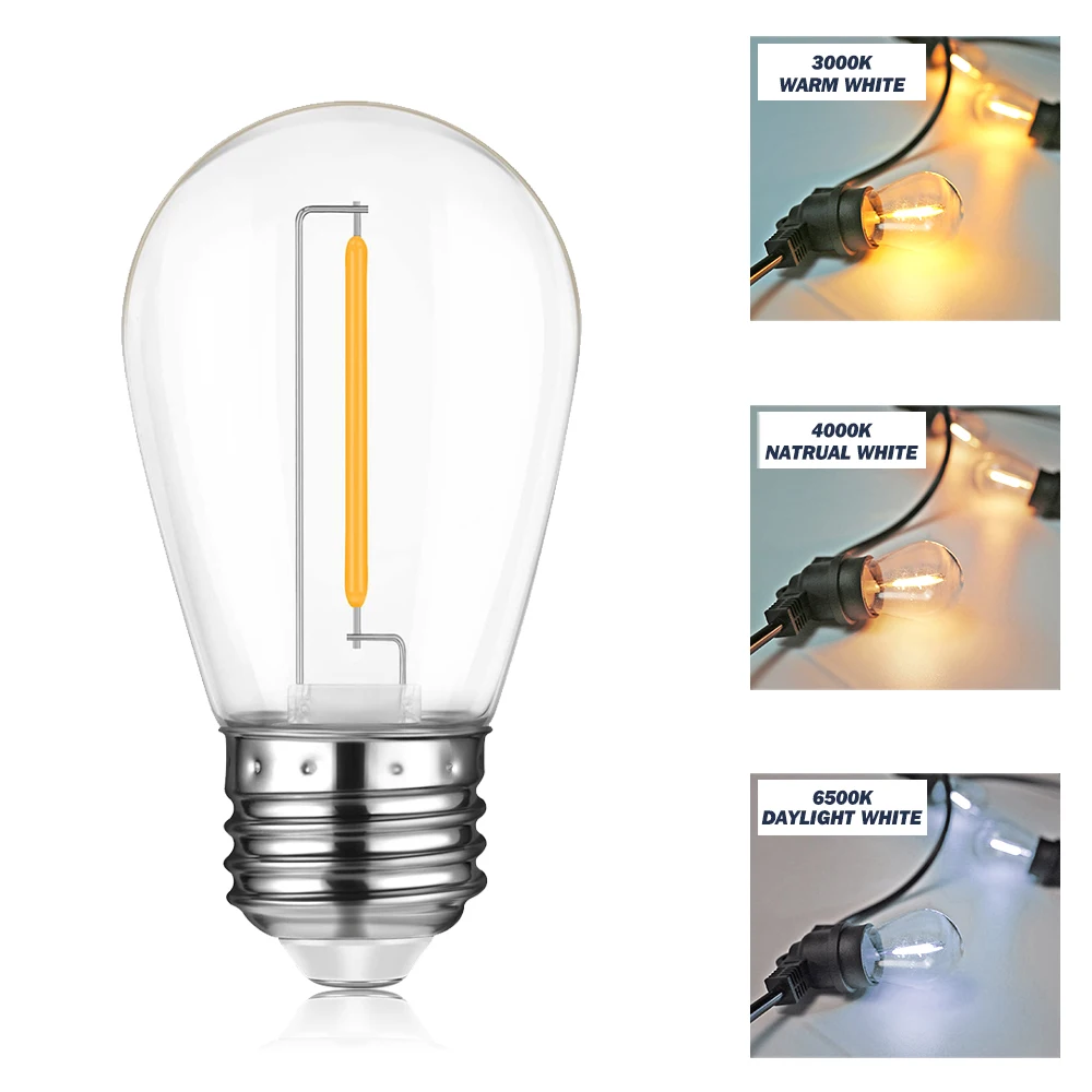 Vertak New Product Led Filament Lamp Bulb 0.3W 1W Transparent Glass Cover Warm S14 E27 Light Bulb