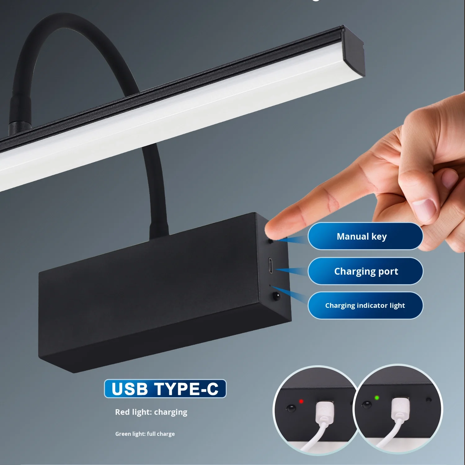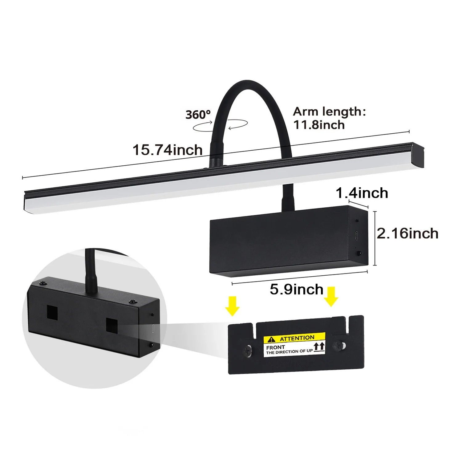 Wireless Rechargeable Picture Light Battery Operated LED Wall Lamp Remote Control Adjustable Angle Vanity Lights