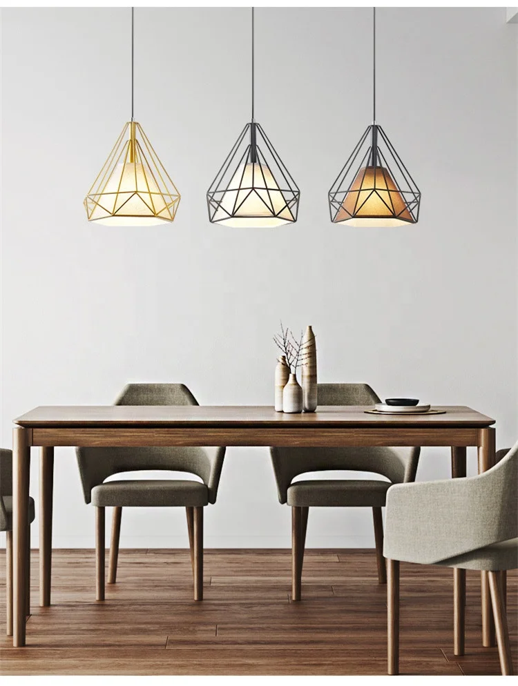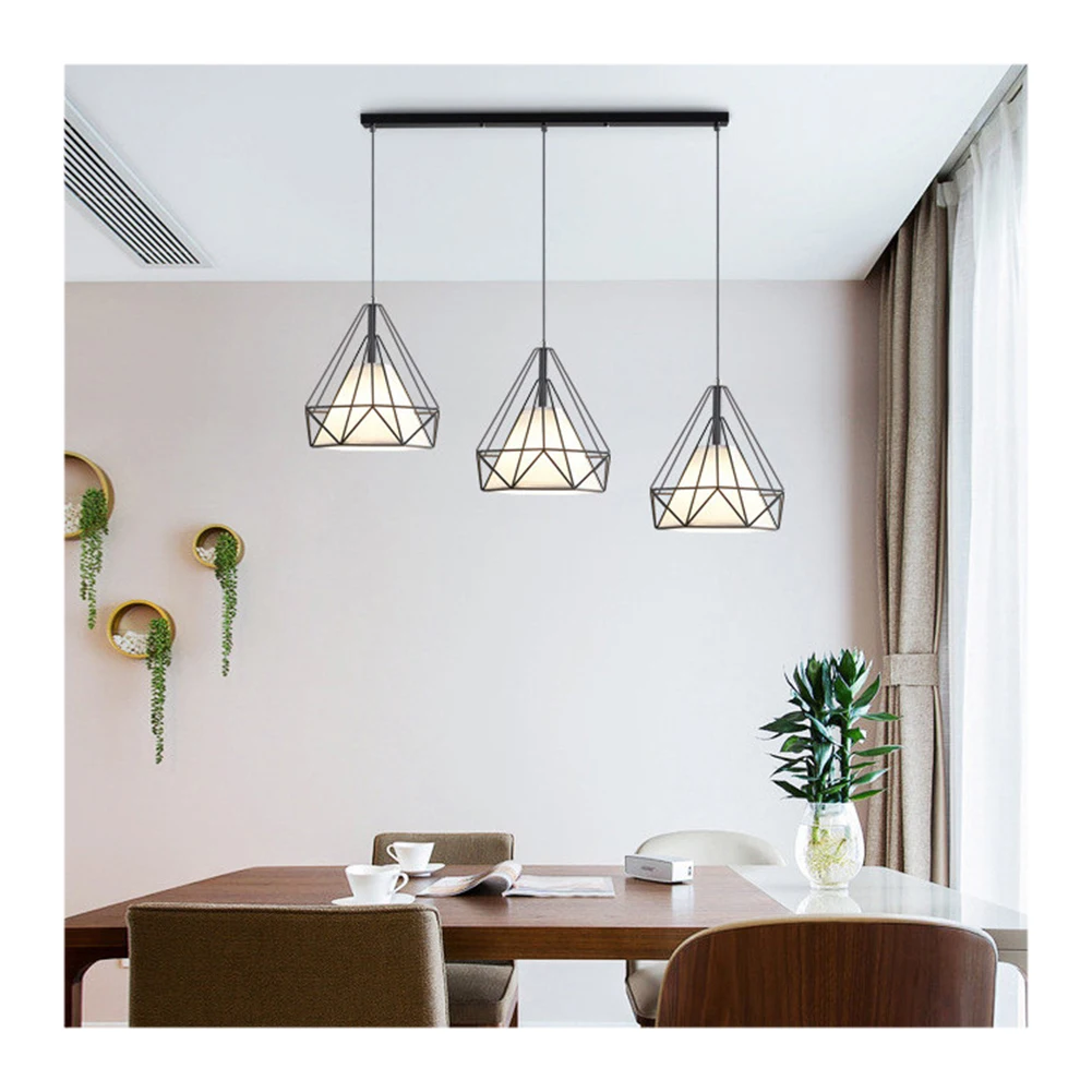 JACKSUN Industrial Farmhouse Black Small Metal Cage Pendant Light Kitchen Island Hanging Lamp with Adjustable Cord
